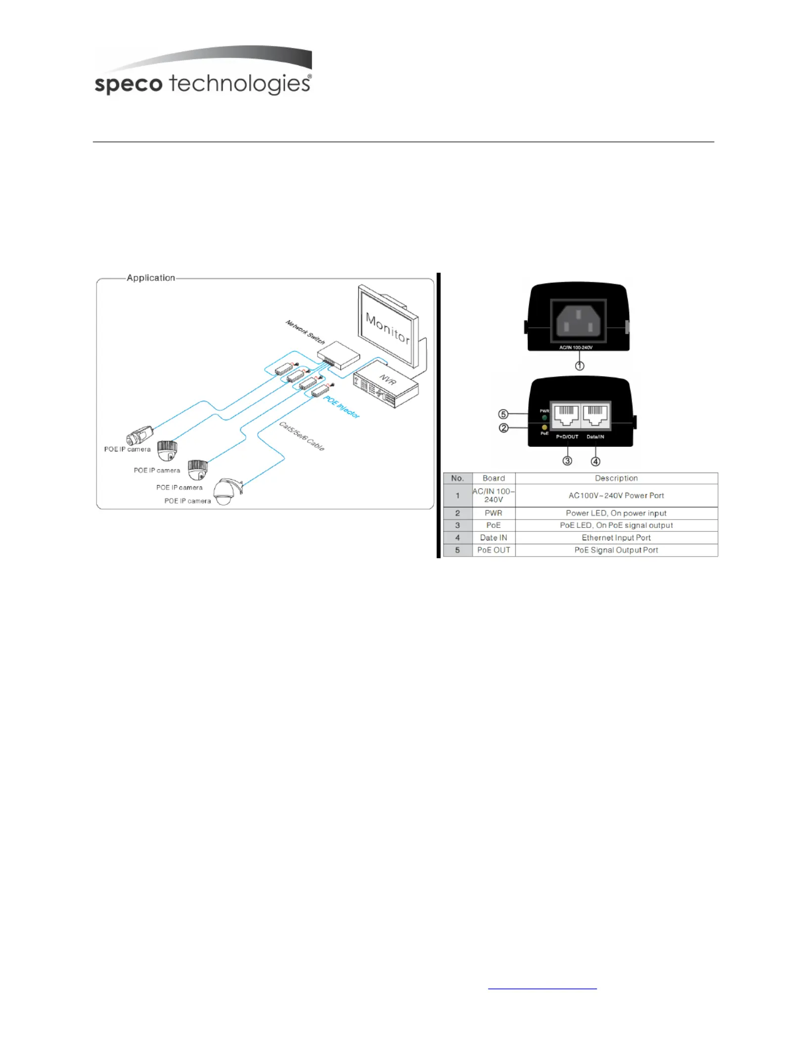 Thank you for your choice of Speco Technologies IP camera accessory. This unit is designed and manufactured to provide an ’POEINJ