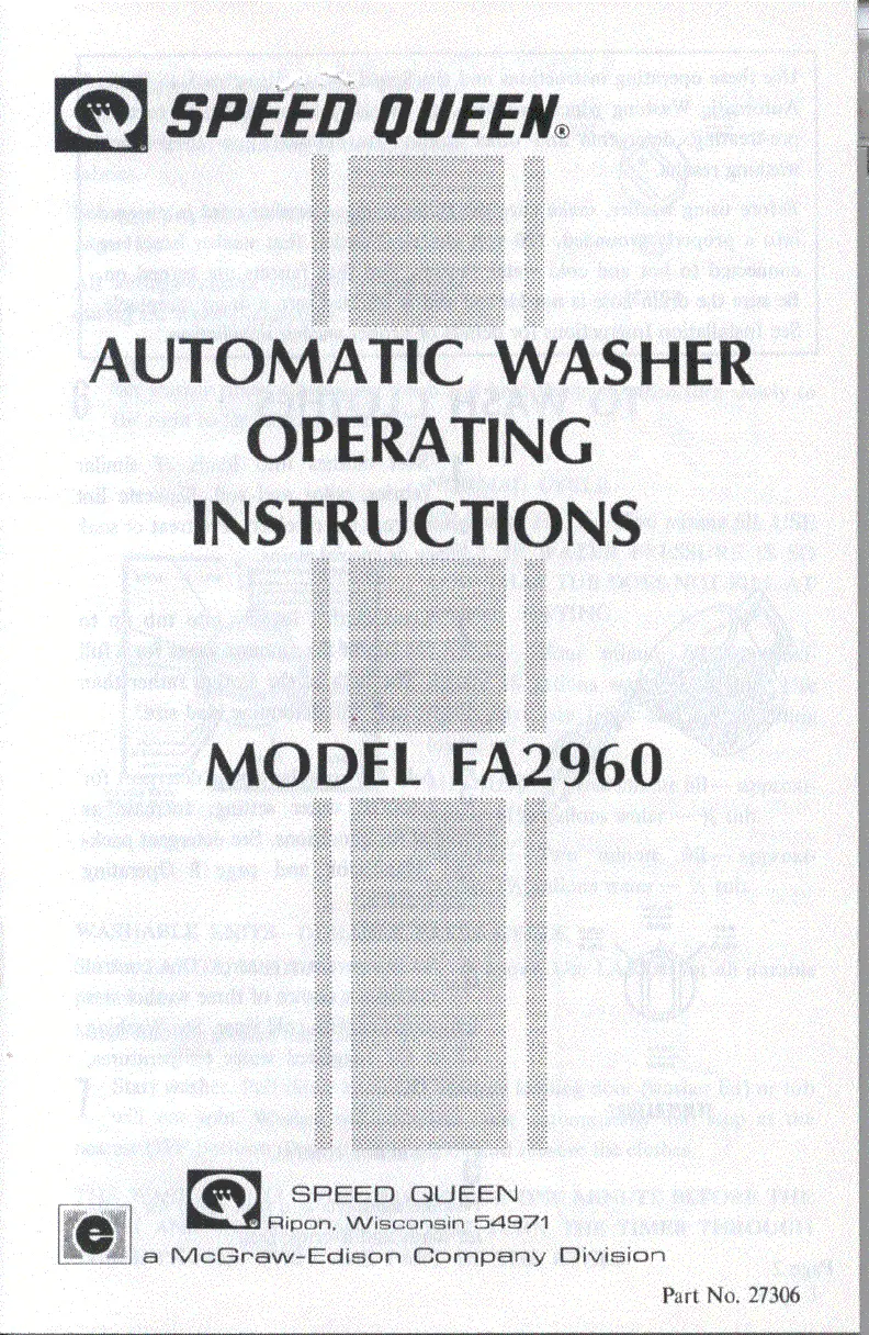Speed Queen FA2960 Bedienungsanleitung