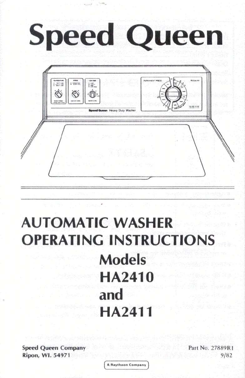 Lies die bedienungsanleitung für Speed Queen HA2411 (6 Seiten) kostenlos online; sie gehört zur Kategorie Waschmaschine. Dieses Handbuch wurde von 28 Personen als hilfreich bewertet und erhielt im Schnitt 4.7 Sterne aus 14.5 Bewertungen. Hast du eine Frage zu Speed Queen HA2411 oder möchtest du andere Nutzer dieses Produkts befragen? Stelle eine Frage