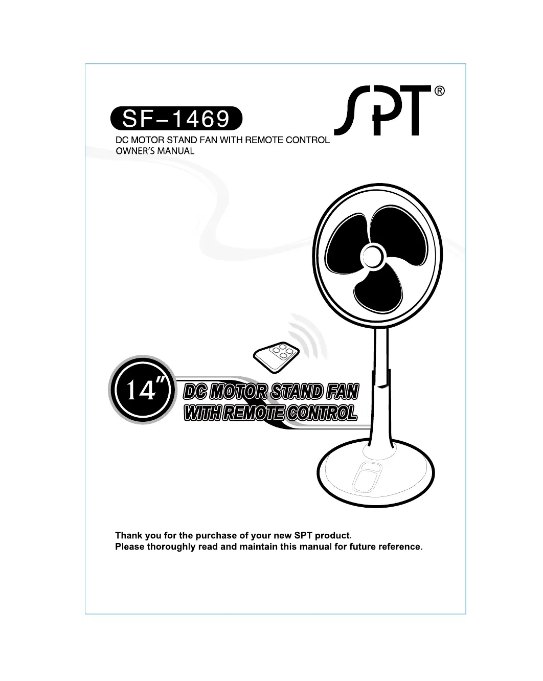Lies die bedienungsanleitung für SPT SF-1469 (7 Seiten) kostenlos online; sie gehört zur Kategorie Ventilator. Dieses Handbuch wurde von 22 Personen als hilfreich bewertet und erhielt im Schnitt 3.7 Sterne aus 11.5 Bewertungen. Hast du eine Frage zu SPT SF-1469 oder möchtest du andere Nutzer dieses Produkts befragen? Stelle eine Frage