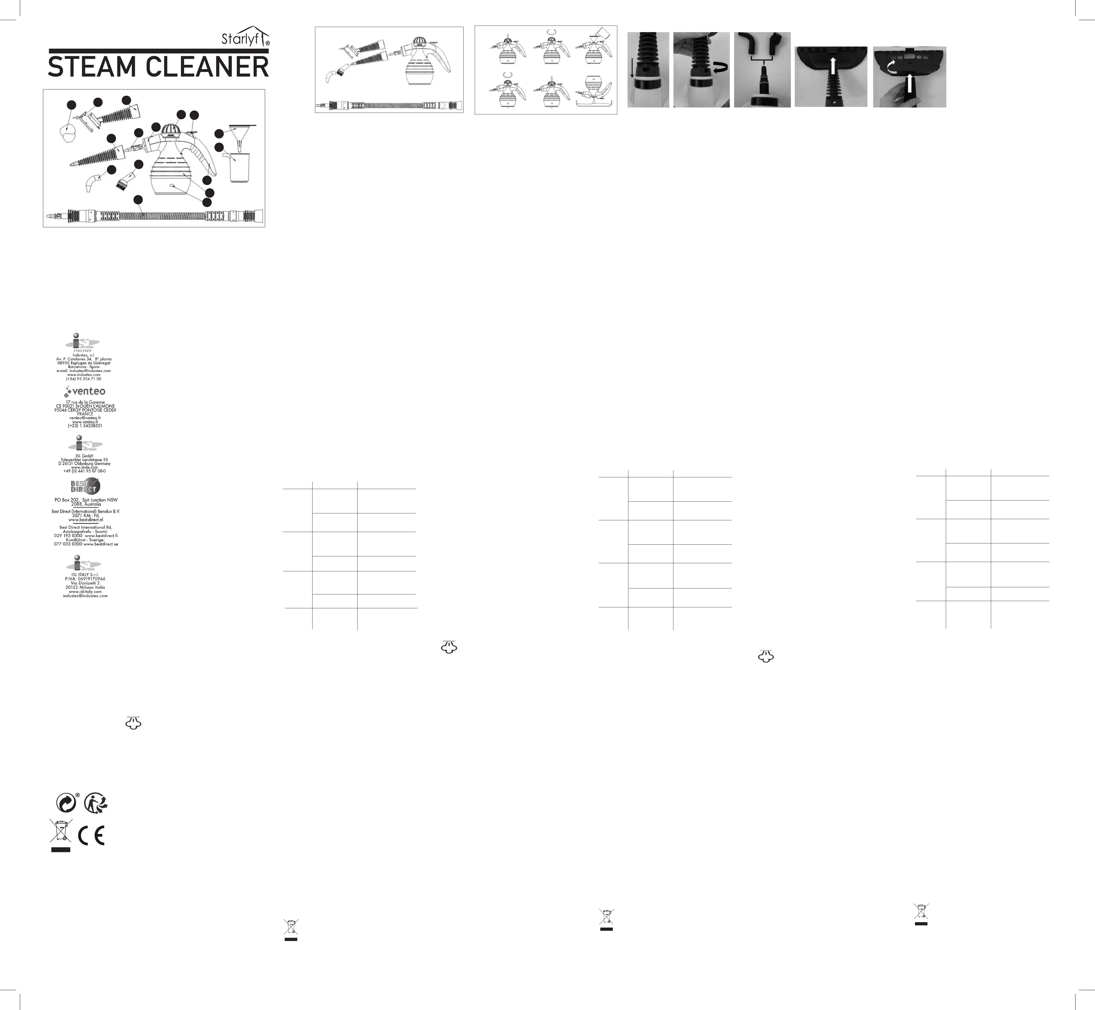 Lies die bedienungsanleitung für Starlyf Steam Cleaner (2 Seiten) kostenlos online; sie gehört zur Kategorie Staubsauger. Dieses Handbuch wurde von 87 Personen als hilfreich bewertet und erhielt im Schnitt 4.6 Sterne aus 44 Bewertungen. Hast du eine Frage zu Starlyf Steam Cleaner oder möchtest du andere Nutzer dieses Produkts befragen? Stelle eine Frage