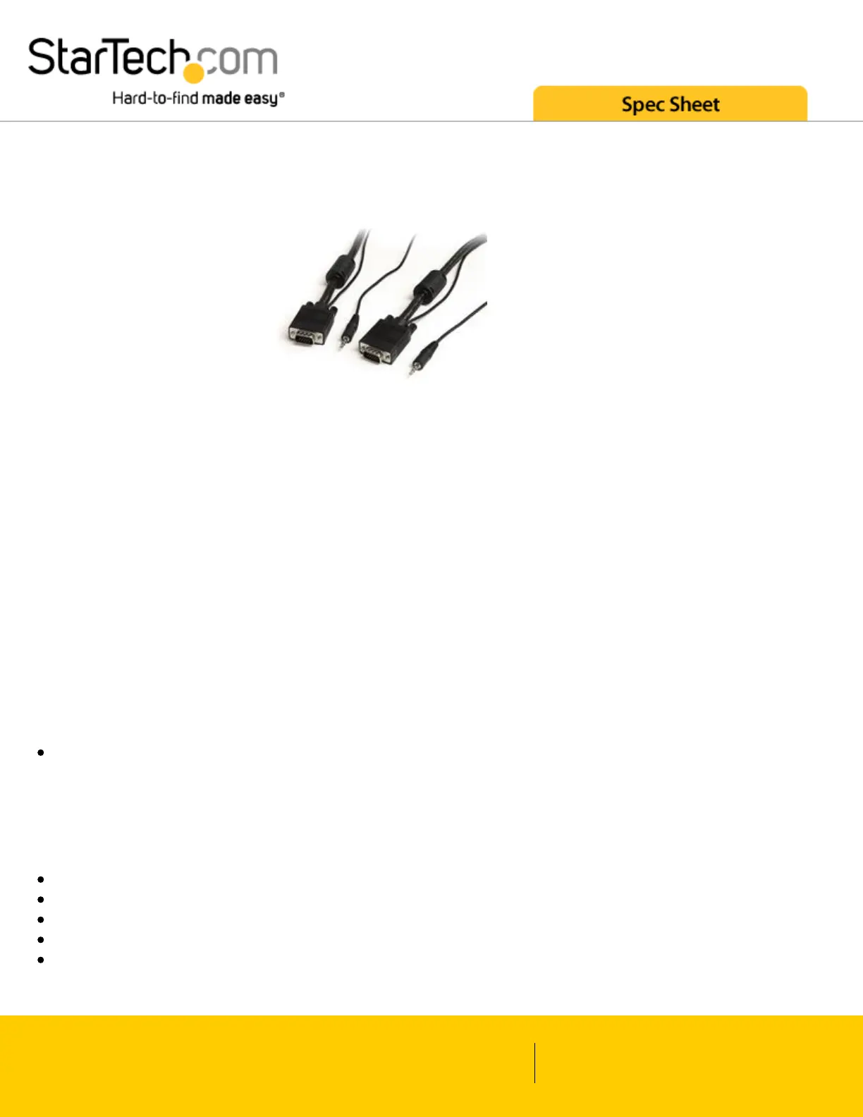 StarTech.com’s high resolution VGA cable with audio features high quality male-to-male coaxial VGA cable, and