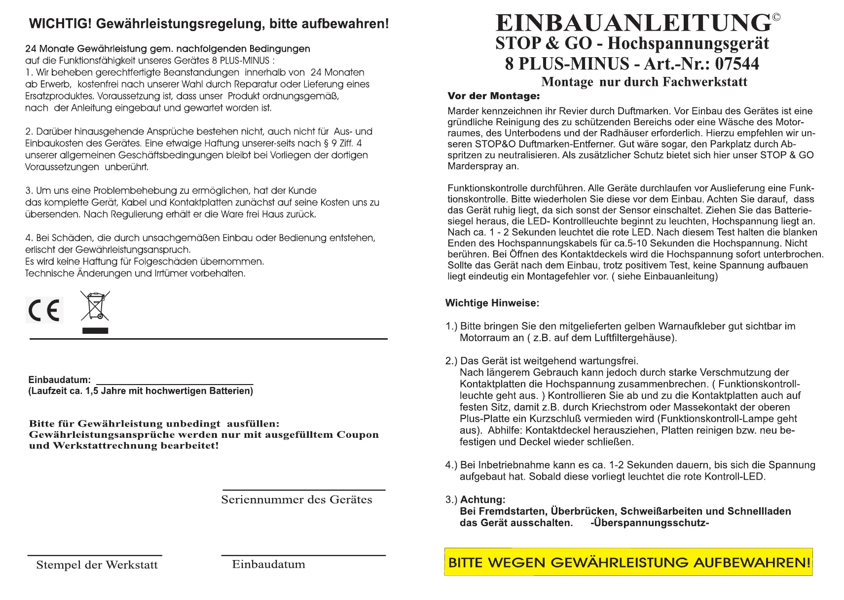 Stop & Go 8 PLUS-MINUS Bedienungsanleitung