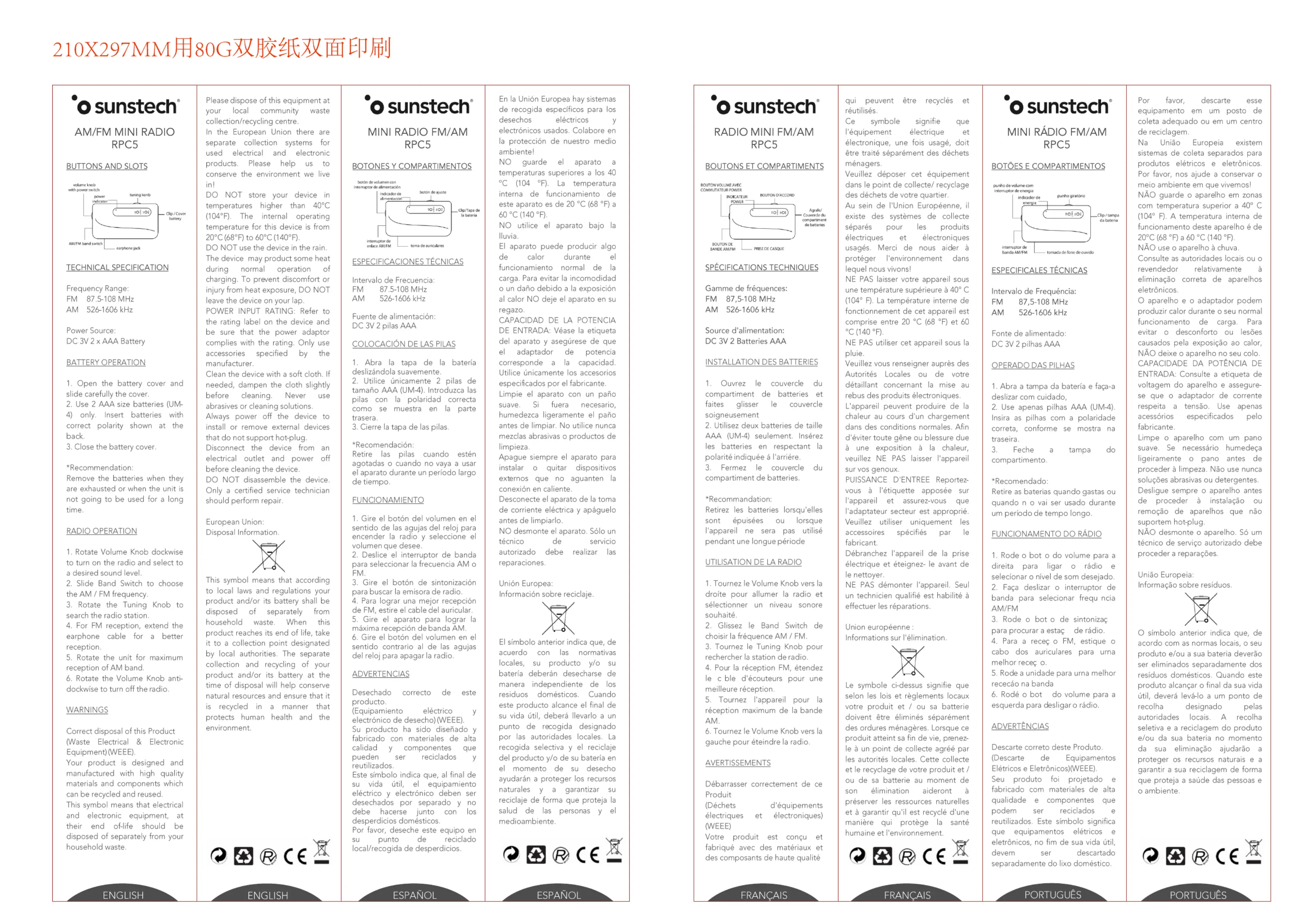 Lies die bedienungsanleitung für Sunstech RPC5 (1 Seiten) kostenlos online; sie gehört zur Kategorie Radio. Dieses Handbuch wurde von 21 Personen als hilfreich bewertet und erhielt im Schnitt 4.3 Sterne aus 11 Bewertungen. Hast du eine Frage zu Sunstech RPC5 oder möchtest du andere Nutzer dieses Produkts befragen? Stelle eine Frage