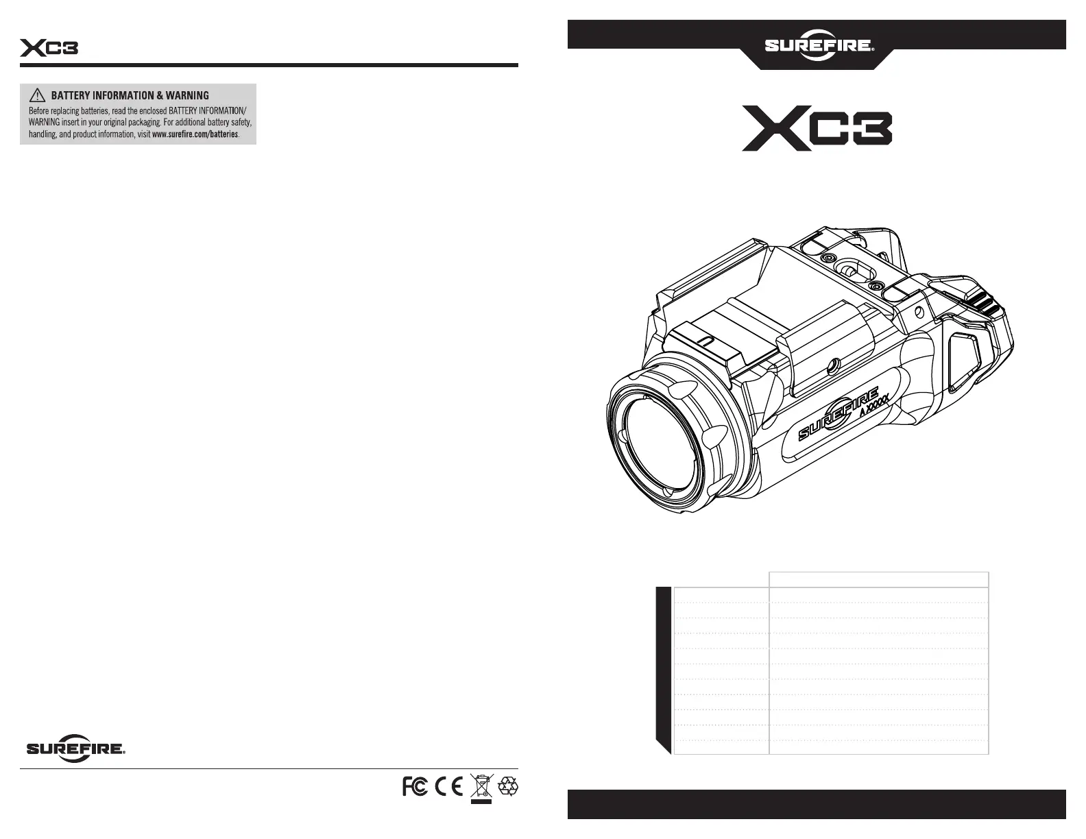 Lies die bedienungsanleitung für SureFire XC3 (2 Seiten) kostenlos online; sie gehört zur Kategorie Nicht kategorisiert. Dieses Handbuch wurde von 8 Personen als hilfreich bewertet und erhielt im Schnitt 4.7 Sterne aus 4.5 Bewertungen. Hast du eine Frage zu SureFire XC3 oder möchtest du andere Nutzer dieses Produkts befragen? Stelle eine Frage