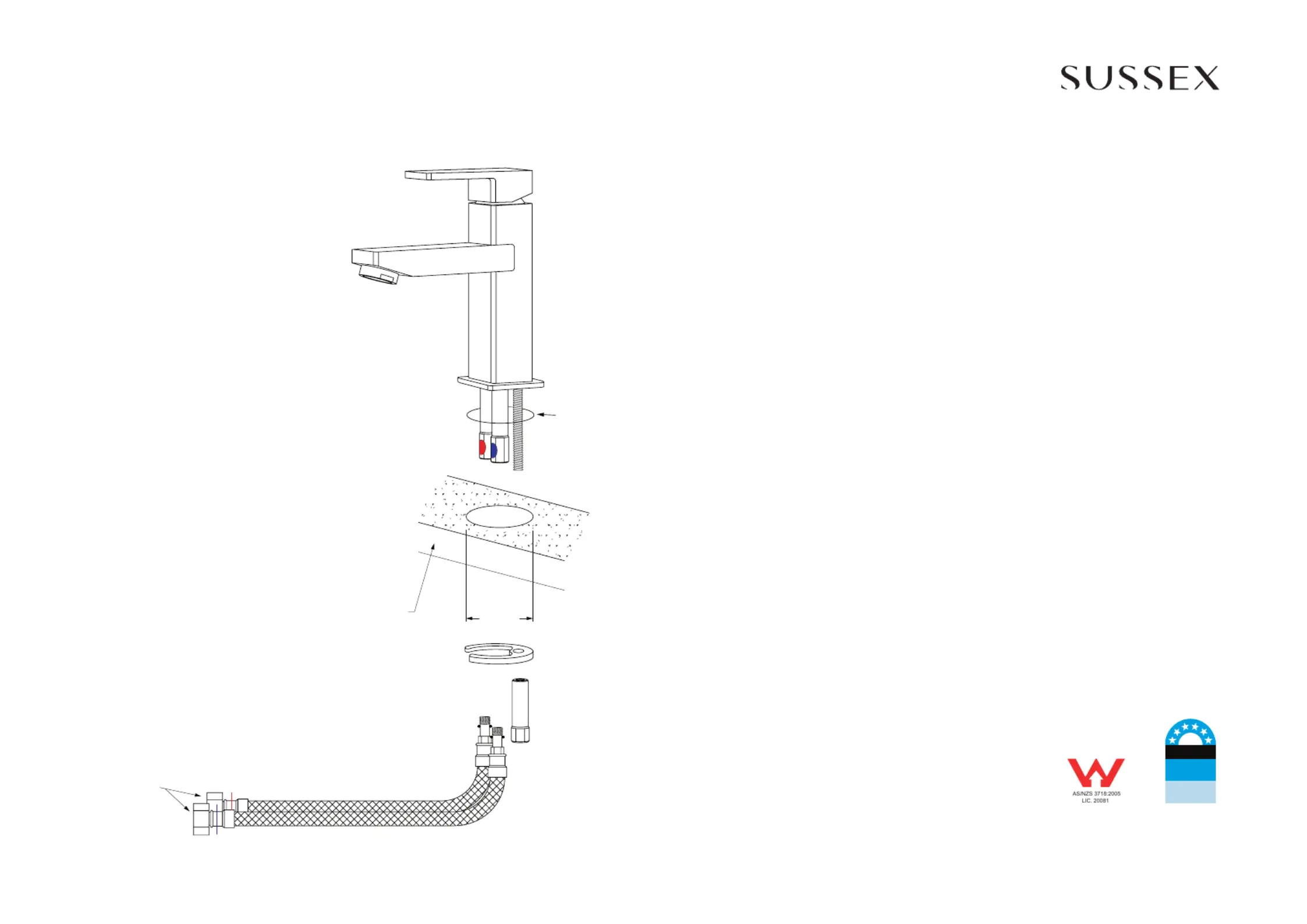 Tapware is to be installed by a Licensed Plumber in accordance with AS/NZS 3500:2003