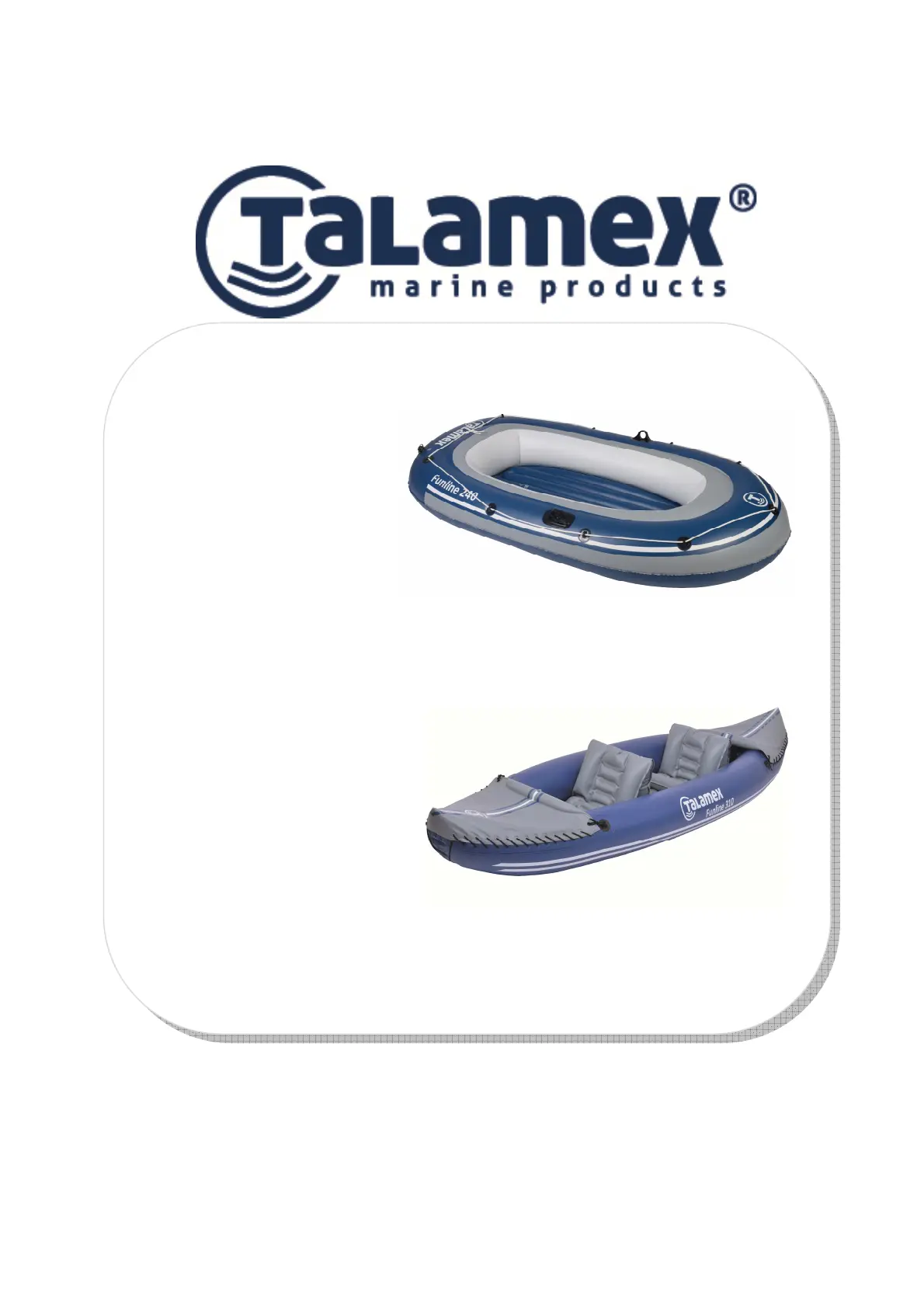 Lies die bedienungsanleitung für Talamex Funline 310 (55 Seiten) kostenlos online; sie gehört zur Kategorie Boote. Dieses Handbuch wurde von 36 Personen als hilfreich bewertet und erhielt im Schnitt 4.5 Sterne aus 6 Bewertungen. Hast du eine Frage zu Talamex Funline 310 oder möchtest du andere Nutzer dieses Produkts befragen? Stelle eine Frage