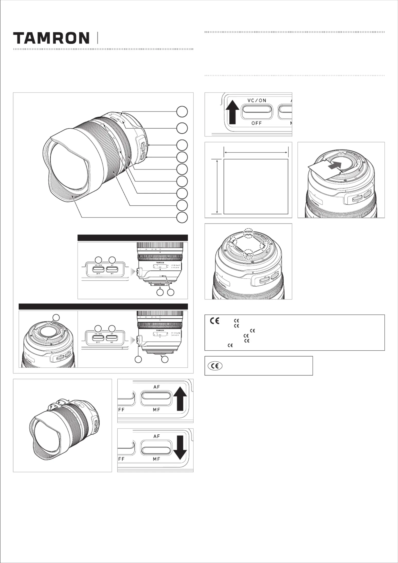 Lies die bedienungsanleitung für Tamron SP 15-30mm F/2.8 Di VC USD G2 (4 Seiten) kostenlos online; sie gehört zur Kategorie Spiegelreflexkamera. Dieses Handbuch wurde von 27 Personen als hilfreich bewertet und erhielt im Schnitt 4.9 Sterne aus 14 Bewertungen. Hast du eine Frage zu Tamron SP 15-30mm F/2.8 Di VC USD G2 oder möchtest du andere Nutzer dieses Produkts befragen? Stelle eine Frage