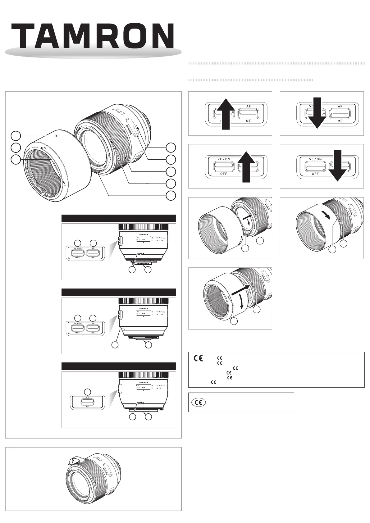 Lies die bedienungsanleitung für Tamron SP 85mm F/1.8 Di VC USD (4 Seiten) kostenlos online; sie gehört zur Kategorie Spiegelreflexkamera. Dieses Handbuch wurde von 57 Personen als hilfreich bewertet und erhielt im Schnitt 3.8 Sterne aus 29 Bewertungen. Hast du eine Frage zu Tamron SP 85mm F/1.8 Di VC USD oder möchtest du andere Nutzer dieses Produkts befragen? Stelle eine Frage