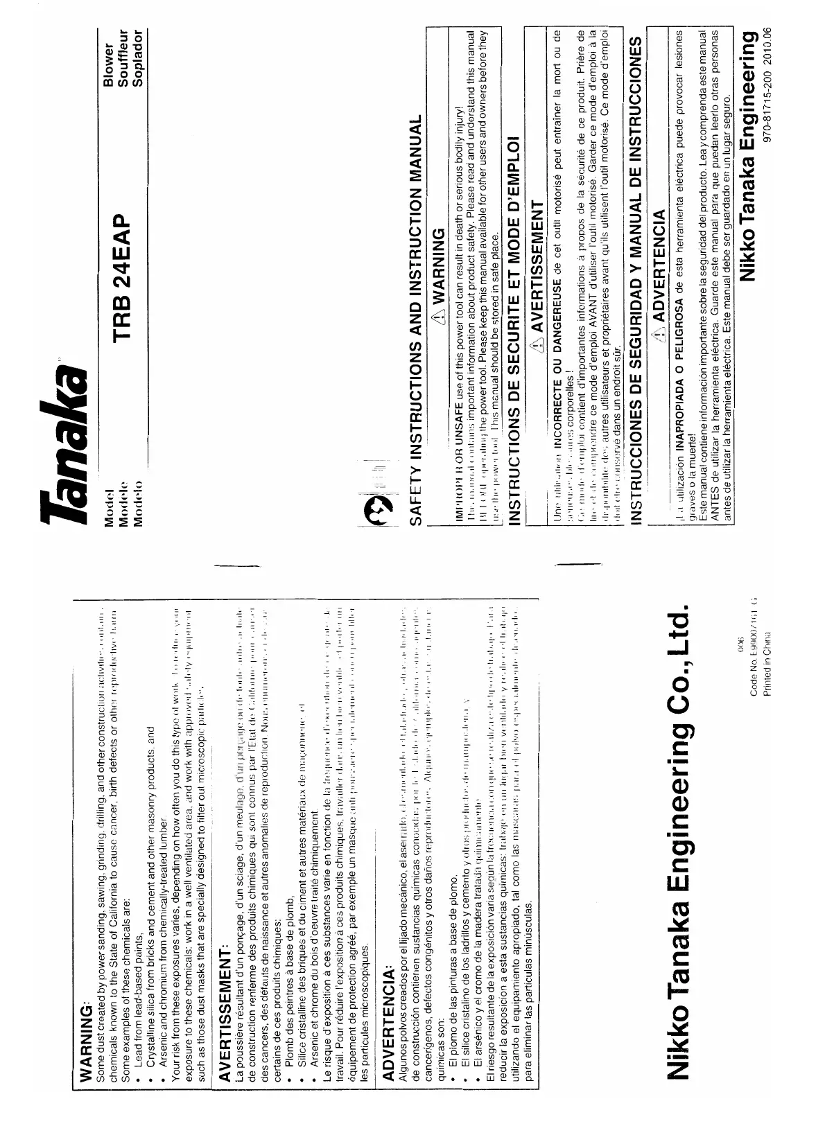 Tanaka TRB 24EAP Bedienungsanleitung