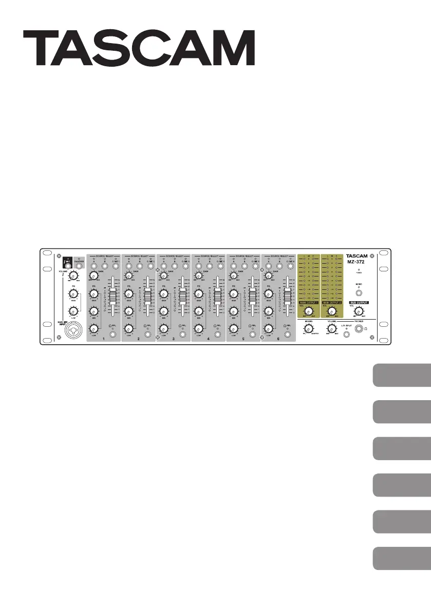 Lies die bedienungsanleitung für Tascam MZ-372 (92 Seiten) kostenlos online; sie gehört zur Kategorie Mischer. Dieses Handbuch wurde von 11 Personen als hilfreich bewertet und erhielt im Schnitt 4.4 Sterne aus 6 Bewertungen. Hast du eine Frage zu Tascam MZ-372 oder möchtest du andere Nutzer dieses Produkts befragen? Stelle eine Frage