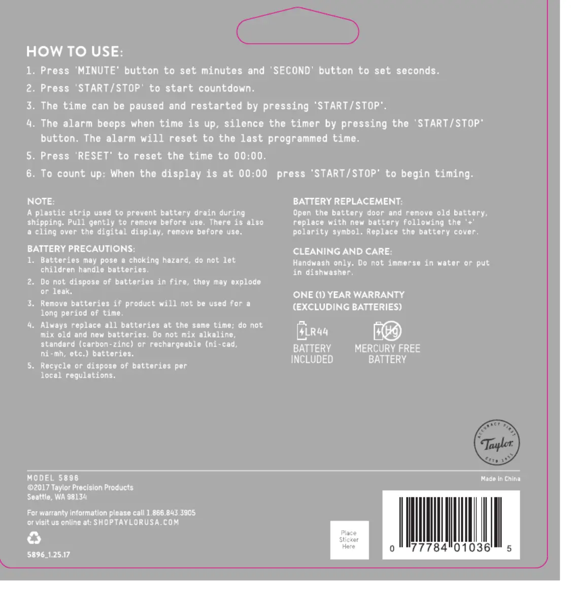 Taylor 5896 Bedienungsanleitung
