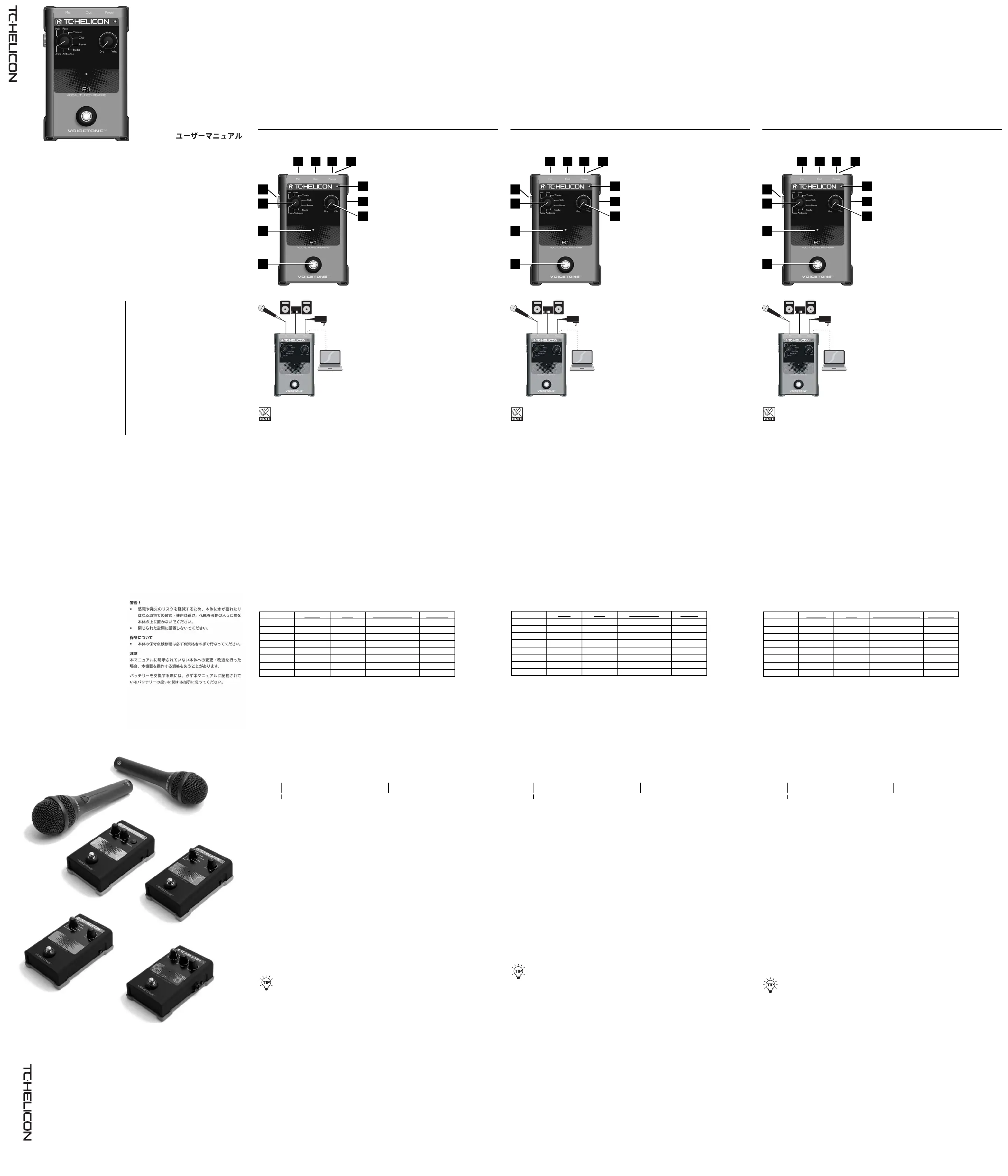 Lies die bedienungsanleitung für TC Helicon VoiceTone R1 (11 Seiten) kostenlos online; sie gehört zur Kategorie Hi-Fi-Anlage. Dieses Handbuch wurde von 40 Personen als hilfreich bewertet und erhielt im Schnitt 4.3 Sterne aus 20.5 Bewertungen. Hast du eine Frage zu TC Helicon VoiceTone R1 oder möchtest du andere Nutzer dieses Produkts befragen? Stelle eine Frage