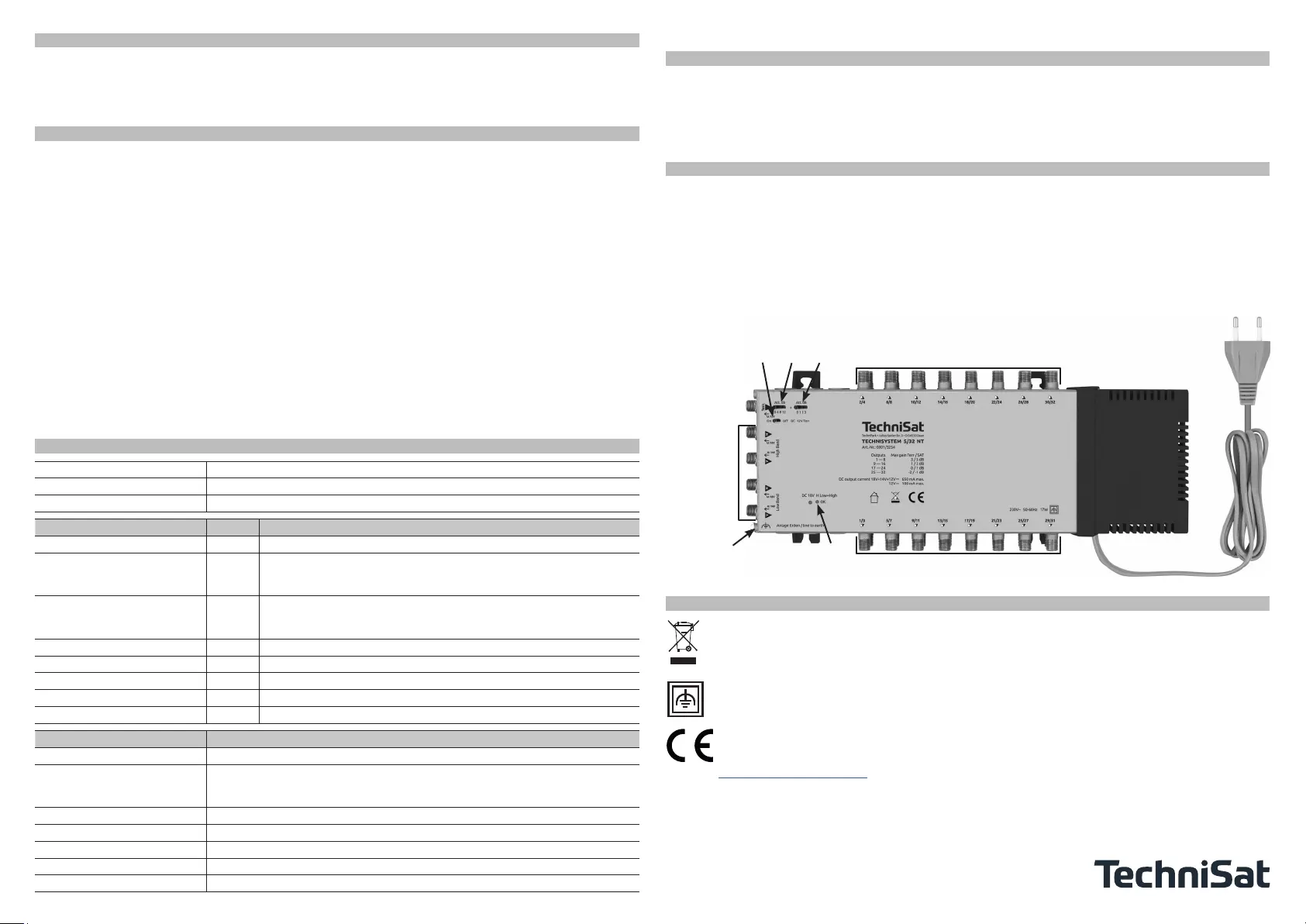 Hiermit erklärt TechniSat, dass der Funkanlagentyp TECHNISYSTEM 5/32 NT der Richtlinie 2014/53/EU ent-