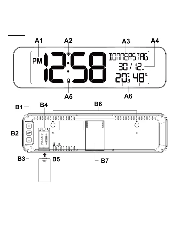B3: “DOWN / °C/°F” Taste B7: Ausklappbarer Standfuß