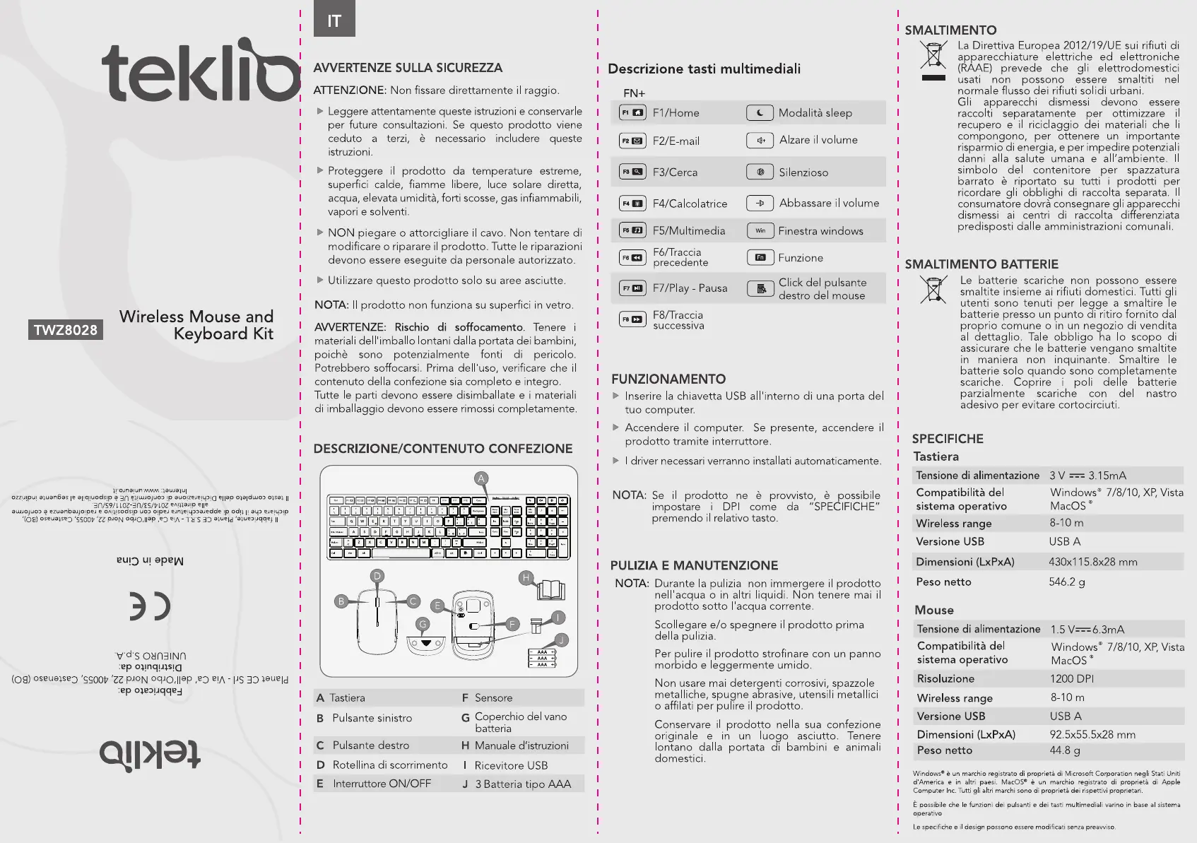 Lies die bedienungsanleitung für TEKLIO TWZ8028 (2 Seiten) kostenlos online; sie gehört zur Kategorie Tastatur. Dieses Handbuch wurde von 40 Personen als hilfreich bewertet und erhielt im Schnitt 4.6 Sterne aus 20.5 Bewertungen. Hast du eine Frage zu TEKLIO TWZ8028 oder möchtest du andere Nutzer dieses Produkts befragen? Stelle eine Frage