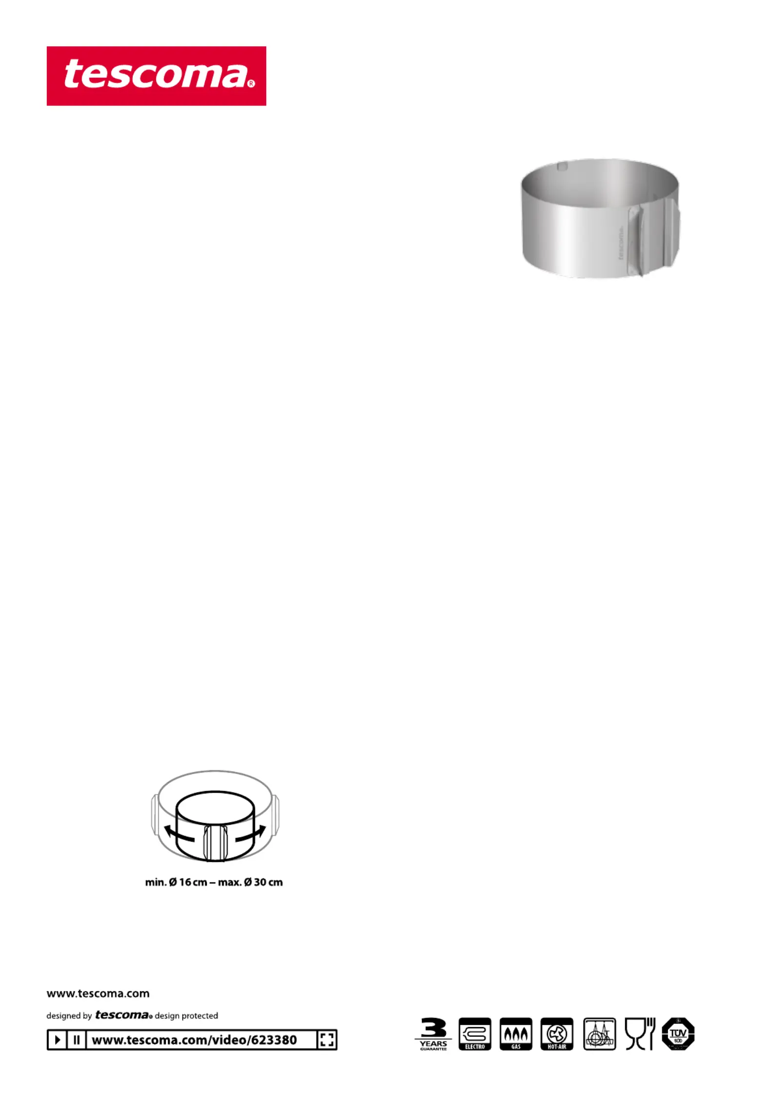 s Nastavitelná forma na kulaté dorty o průměru od 16 cm do 30 cm. Formu