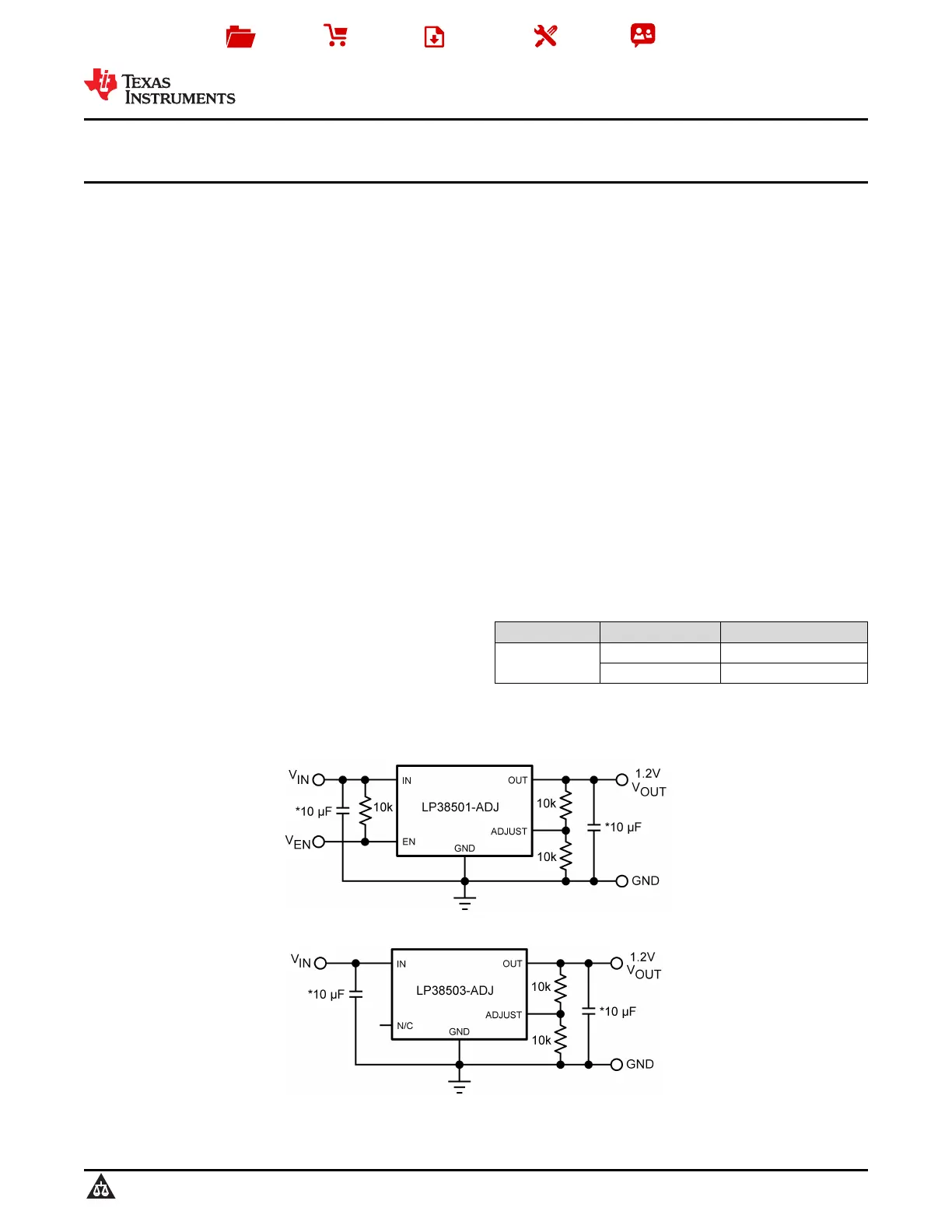 Lies die bedienungsanleitung für Texas Instruments LP38503-ADJ (28 Seiten) kostenlos online; sie gehört zur Kategorie Nicht kategorisiert. Dieses Handbuch wurde von 2 Personen als hilfreich bewertet und erhielt im Schnitt 4.6 Sterne aus 5 Bewertungen. Hast du eine Frage zu Texas Instruments LP38503-ADJ oder möchtest du andere Nutzer dieses Produkts befragen? Stelle eine Frage