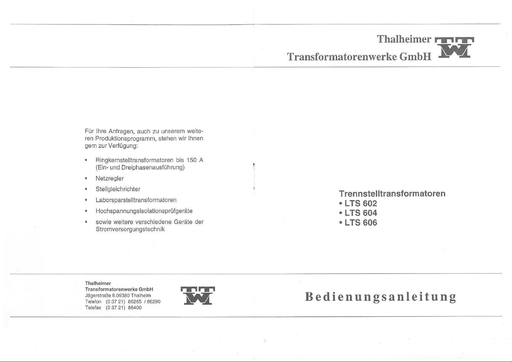 Thalheimer LTS 606 Bedienungsanleitung