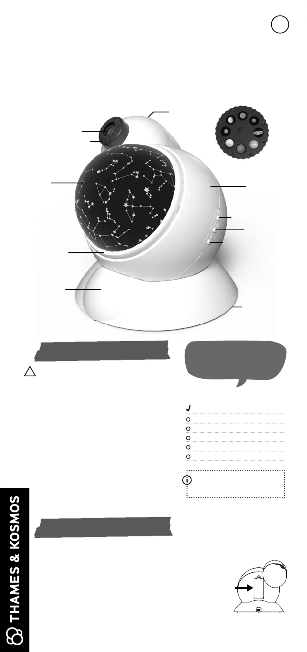 Lies die bedienungsanleitung für Thames & Kosmos Planetarium Projector (8 Seiten) kostenlos online; sie gehört zur Kategorie Nicht kategorisiert. Dieses Handbuch wurde von 12 Personen als hilfreich bewertet und erhielt im Schnitt 5.0 Sterne aus 5 Bewertungen. Hast du eine Frage zu Thames & Kosmos Planetarium Projector oder möchtest du andere Nutzer dieses Produkts befragen? Stelle eine Frage