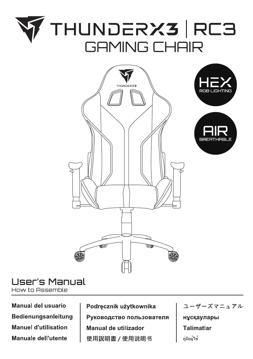 Lies die bedienungsanleitung für ThunderX3 RC3 (11 Seiten) kostenlos online; sie gehört zur Kategorie Bürostuhl. Dieses Handbuch wurde von 42 Personen als hilfreich bewertet und erhielt im Schnitt 4.4 Sterne aus 21.5 Bewertungen. Hast du eine Frage zu ThunderX3 RC3 oder möchtest du andere Nutzer dieses Produkts befragen? Stelle eine Frage
