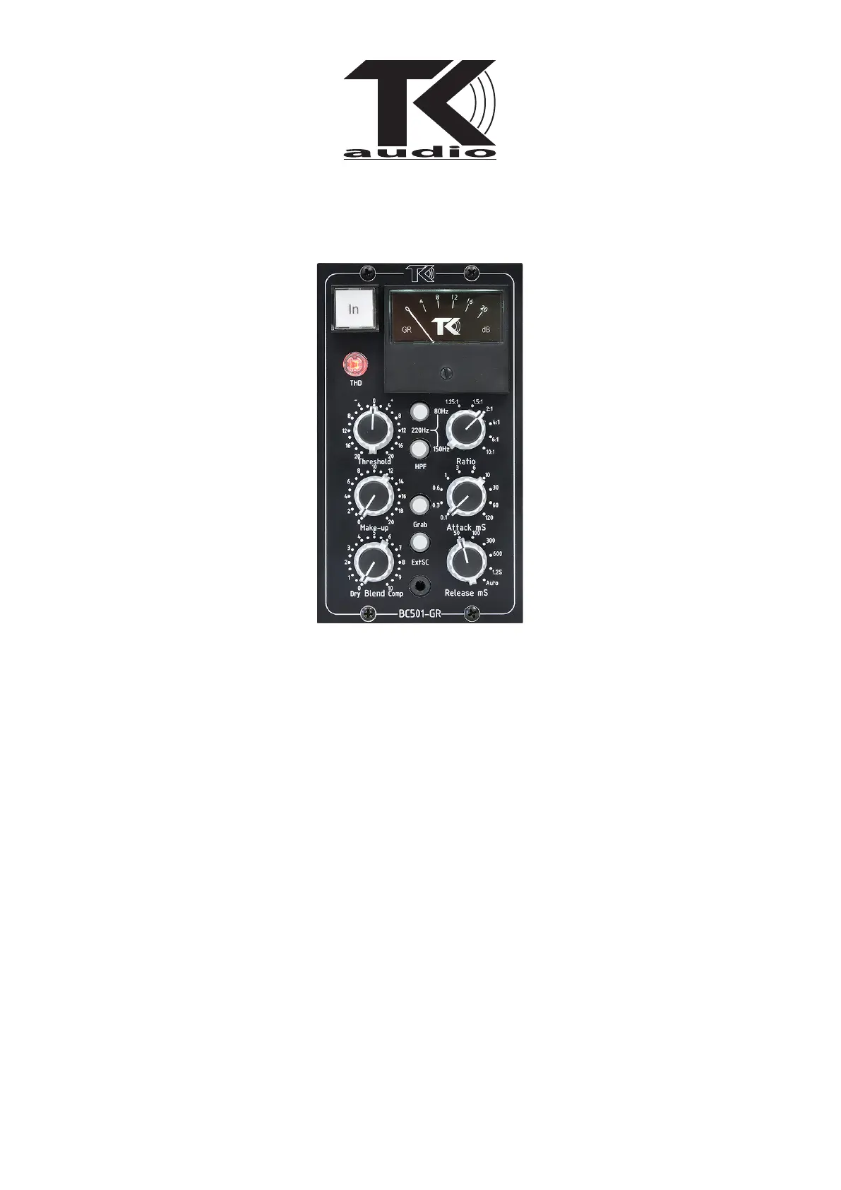 switchable side chain lter can be applied at 80Hz, 150Hz or 220Hz which makes the BC501-