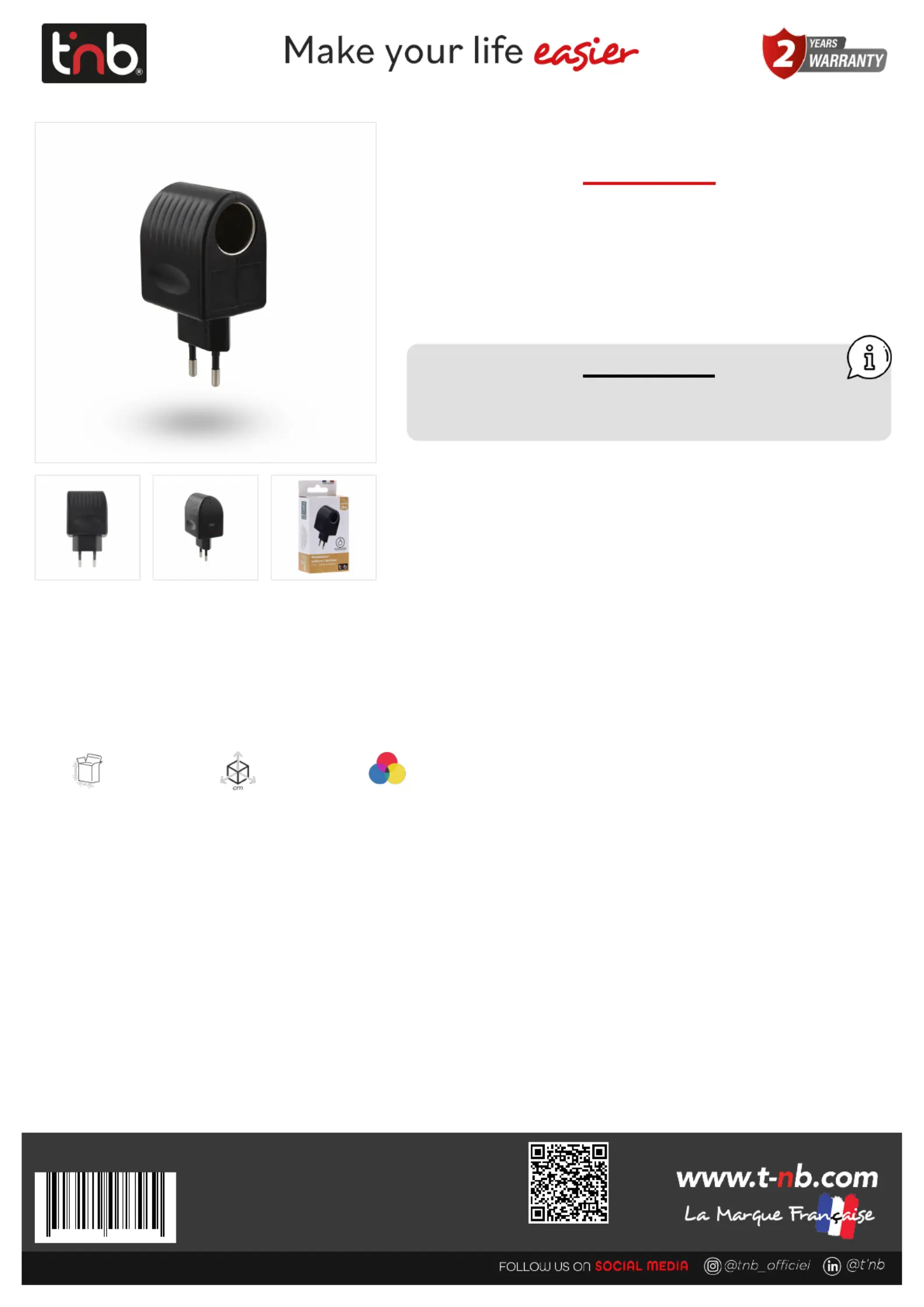 Lies die bedienungsanleitung für T'nB ACGPACDC02 (1 Seiten) kostenlos online; sie gehört zur Kategorie Nicht kategorisiert. Dieses Handbuch wurde von 4 Personen als hilfreich bewertet und erhielt im Schnitt 4.4 Sterne aus 2.5 Bewertungen. Hast du eine Frage zu T'nB ACGPACDC02 oder möchtest du andere Nutzer dieses Produkts befragen? Stelle eine Frage