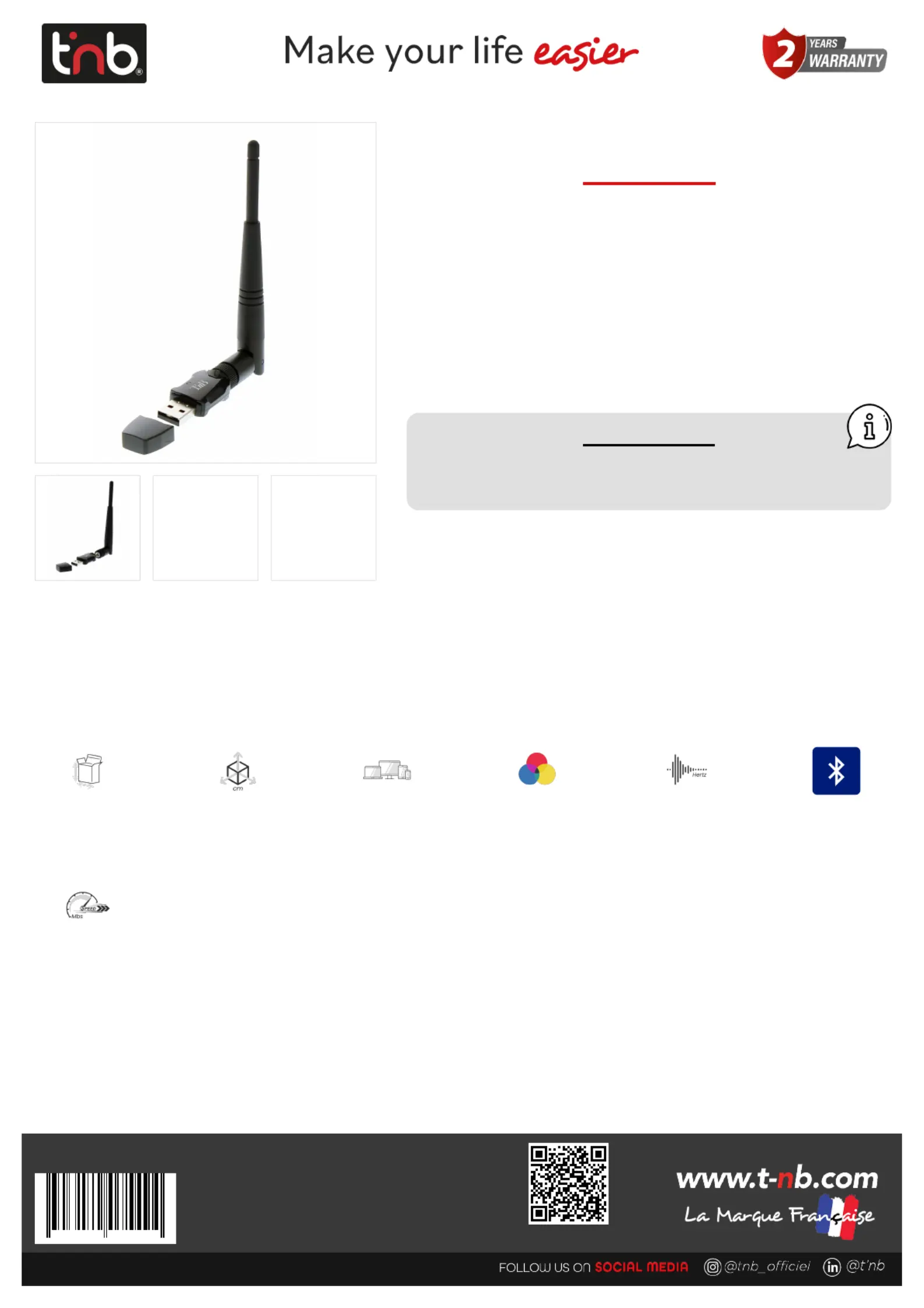 Lies die bedienungsanleitung für T'nB ADWF600AC (1 Seiten) kostenlos online; sie gehört zur Kategorie Nicht kategorisiert. Dieses Handbuch wurde von 4 Personen als hilfreich bewertet und erhielt im Schnitt 4.8 Sterne aus 2.5 Bewertungen. Hast du eine Frage zu T'nB ADWF600AC oder möchtest du andere Nutzer dieses Produkts befragen? Stelle eine Frage