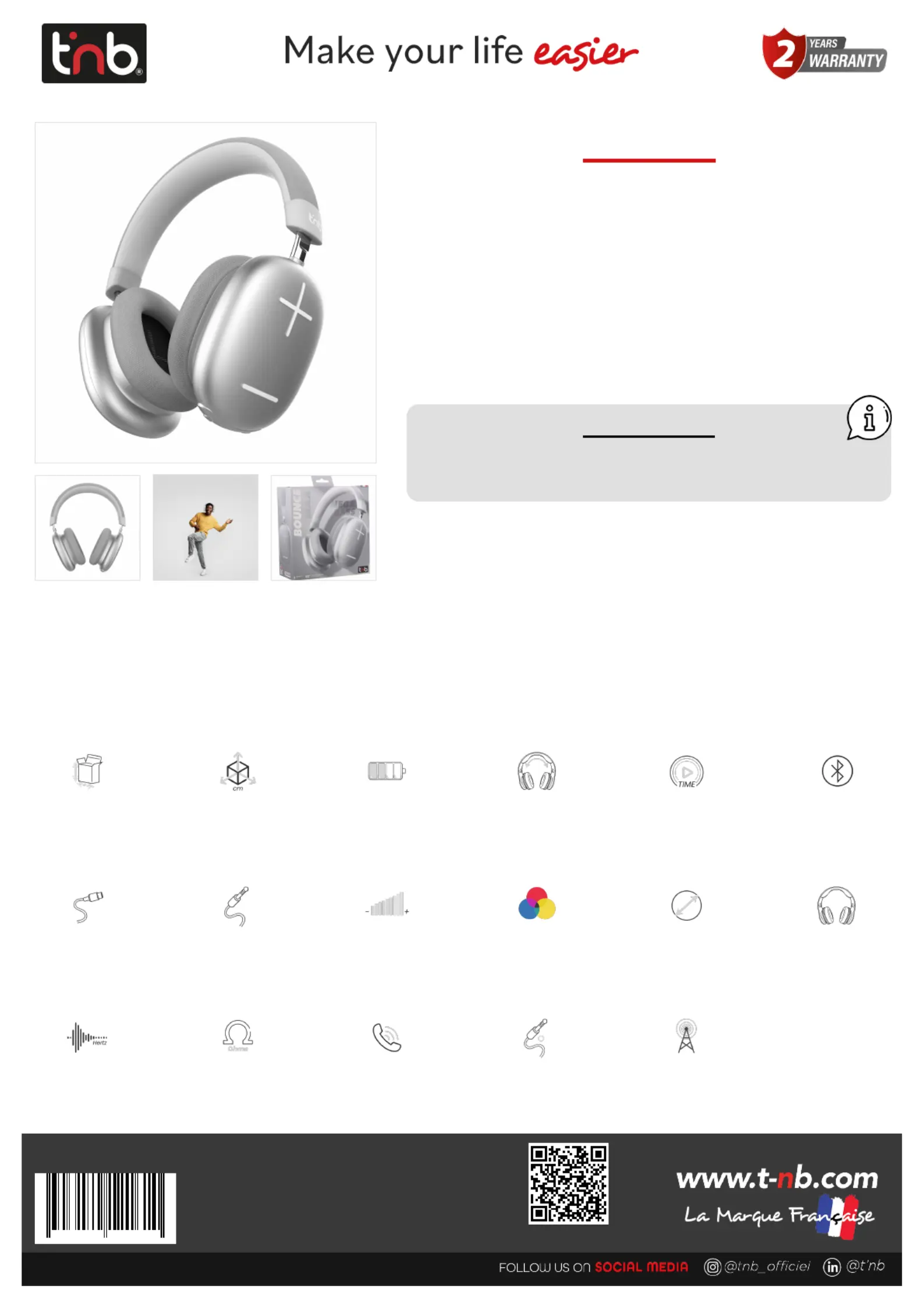 Lies die bedienungsanleitung für T'nB BOUNCE CBBOUNCE2SL (1 Seiten) kostenlos online; sie gehört zur Kategorie Kopfhörer. Dieses Handbuch wurde von 11 Personen als hilfreich bewertet und erhielt im Schnitt 3.9 Sterne aus 6 Bewertungen. Hast du eine Frage zu T'nB BOUNCE CBBOUNCE2SL oder möchtest du andere Nutzer dieses Produkts befragen? Stelle eine Frage