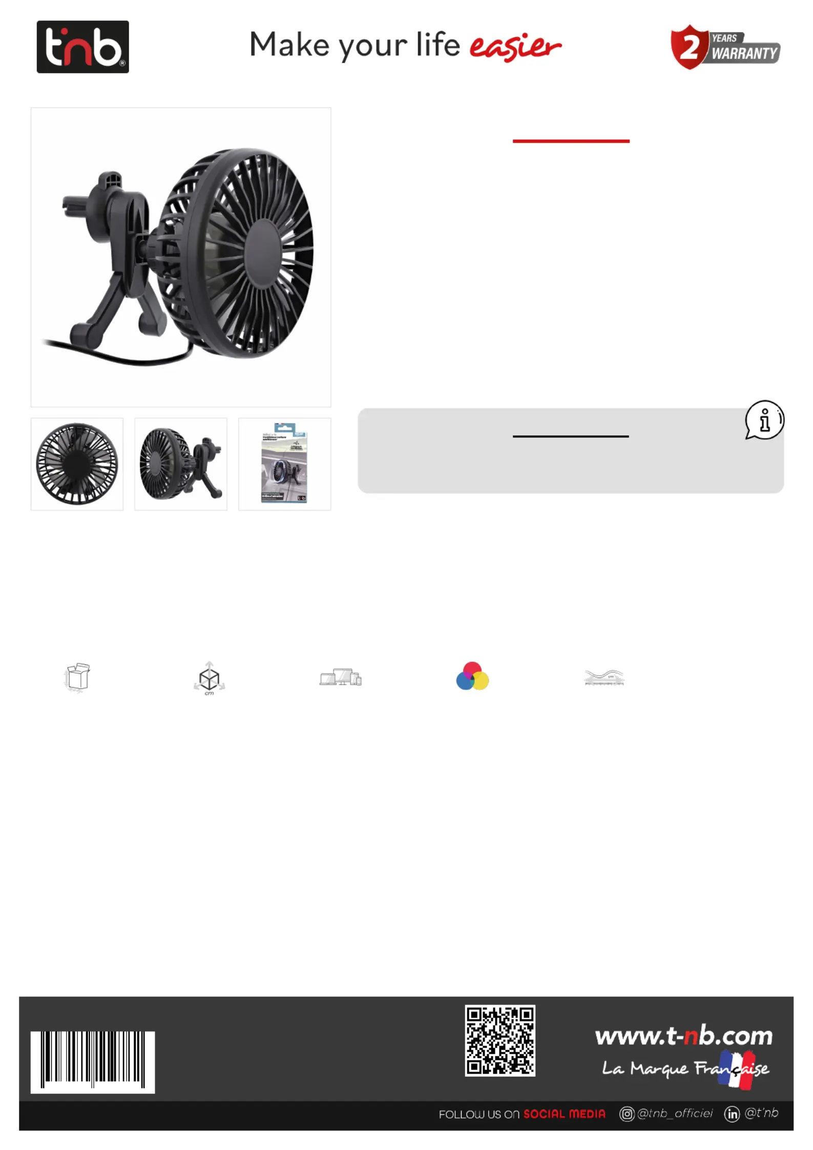 Lies die bedienungsanleitung für T'nB CARFAN (1 Seiten) kostenlos online; sie gehört zur Kategorie Nicht kategorisiert. Dieses Handbuch wurde von 23 Personen als hilfreich bewertet und erhielt im Schnitt 4.9 Sterne aus 12 Bewertungen. Hast du eine Frage zu T'nB CARFAN oder möchtest du andere Nutzer dieses Produkts befragen? Stelle eine Frage