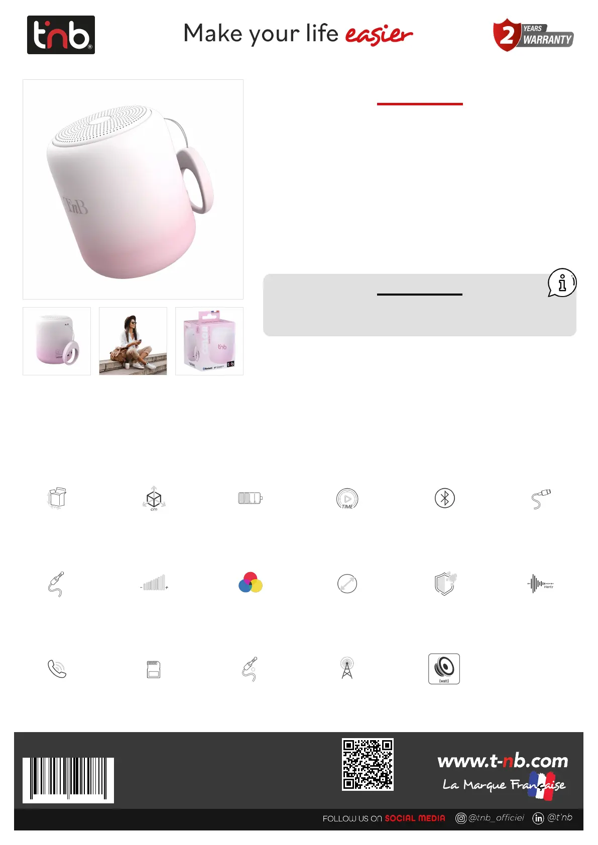 Lies die bedienungsanleitung für T'nB HPCOLORPK (2 Seiten) kostenlos online; sie gehört zur Kategorie Lautsprecher. Dieses Handbuch wurde von 24 Personen als hilfreich bewertet und erhielt im Schnitt 4.8 Sterne aus 12.5 Bewertungen. Hast du eine Frage zu T'nB HPCOLORPK oder möchtest du andere Nutzer dieses Produkts befragen? Stelle eine Frage