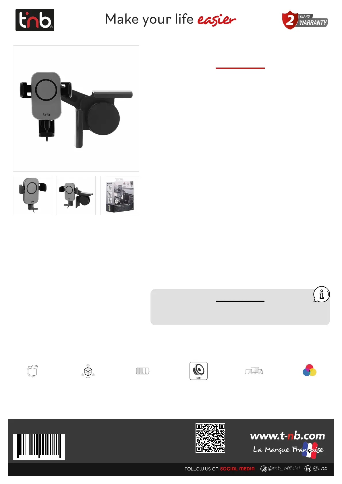 Thanks to its adjustable attachment, this support is compatible with all existing Tesla