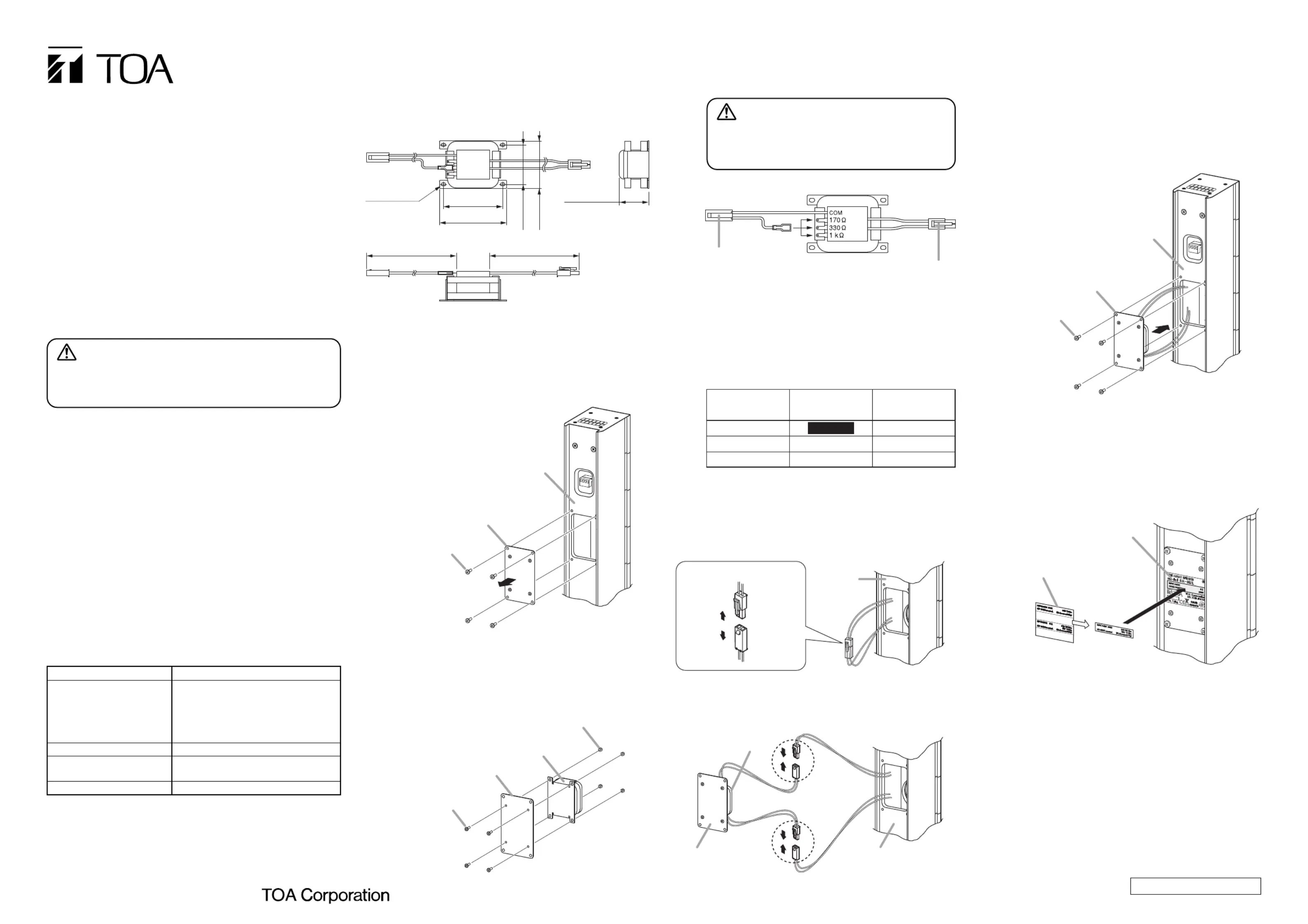 Thank you for purchasing TOA Matching Transformer.