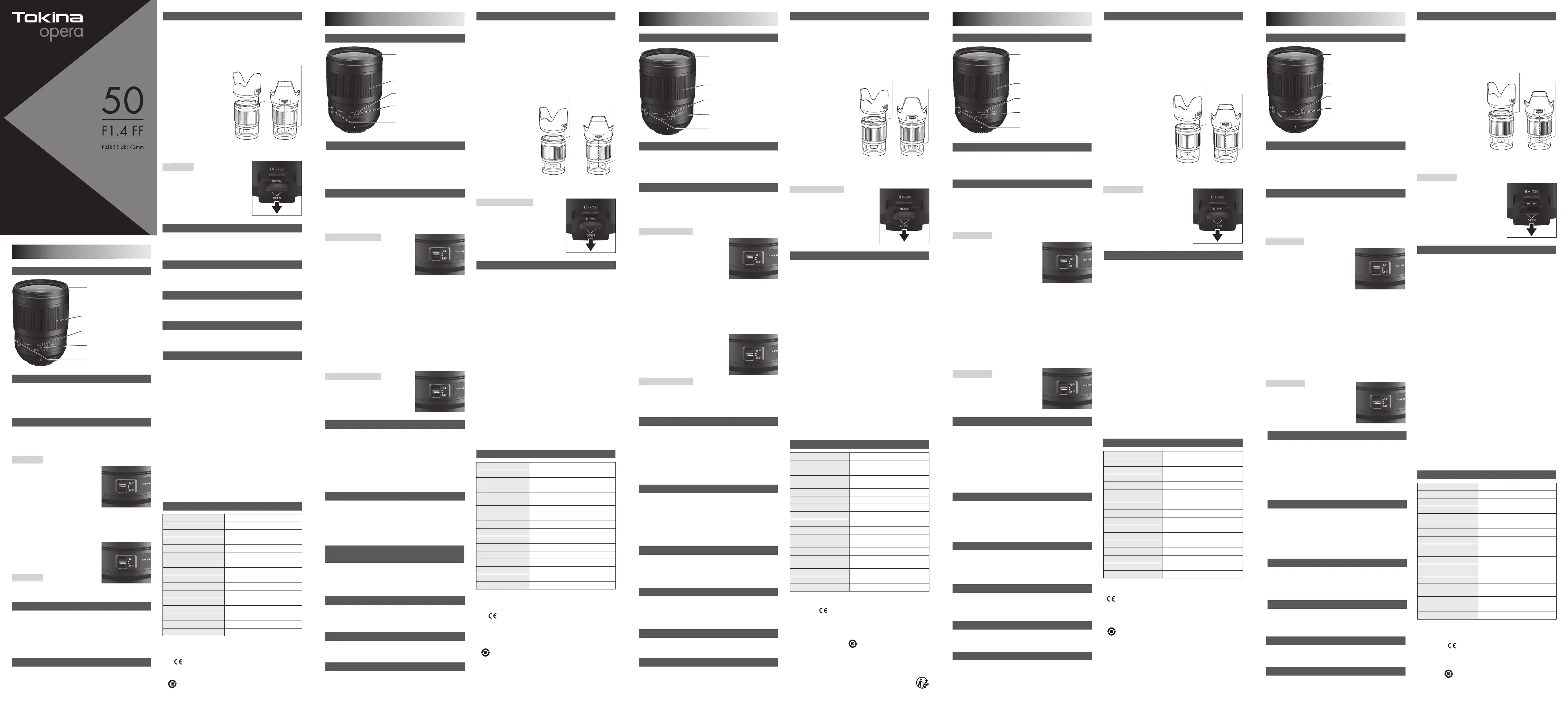 Tokina opera 50mm F1.4 FF Bedienungsanleitung