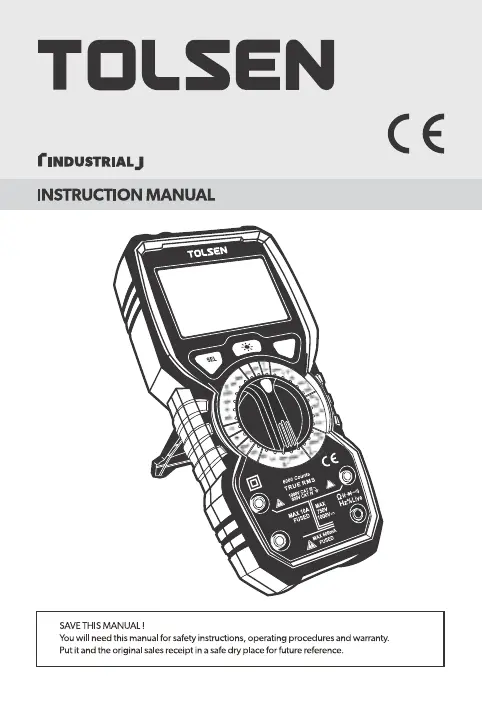 Lies die bedienungsanleitung für Tolsen 38033 (27 Seiten) kostenlos online; sie gehört zur Kategorie Multimeter. Dieses Handbuch wurde von 3 Personen als hilfreich bewertet und erhielt im Schnitt 5.0 Sterne aus 5 Bewertungen. Hast du eine Frage zu Tolsen 38033 oder möchtest du andere Nutzer dieses Produkts befragen? Stelle eine Frage