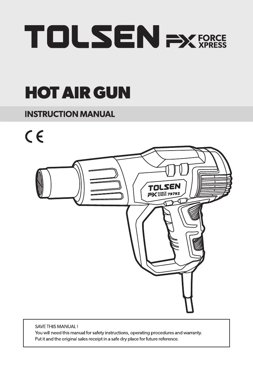 Lies die bedienungsanleitung für Tolsen 79792 (112 Seiten) kostenlos online; sie gehört zur Kategorie Hitzepistole. Dieses Handbuch wurde von 3 Personen als hilfreich bewertet und erhielt im Schnitt 4.2 Sterne aus 9 Bewertungen. Hast du eine Frage zu Tolsen 79792 oder möchtest du andere Nutzer dieses Produkts befragen? Stelle eine Frage