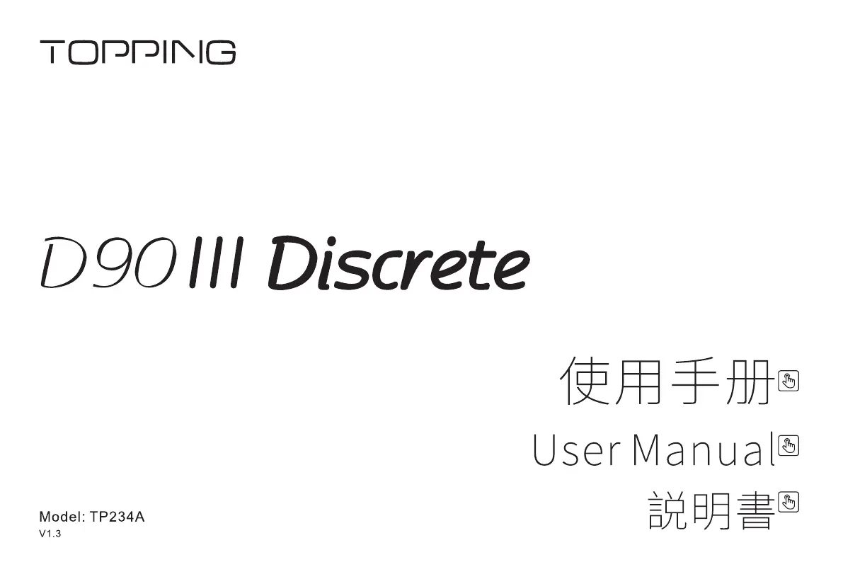 Lies die bedienungsanleitung für Topping D90 III Discrete (45 Seiten) kostenlos online; sie gehört zur Kategorie Nicht kategorisiert. Dieses Handbuch wurde von 23 Personen als hilfreich bewertet und erhielt im Schnitt 3.5 Sterne aus 12 Bewertungen. Hast du eine Frage zu Topping D90 III Discrete oder möchtest du andere Nutzer dieses Produkts befragen? Stelle eine Frage