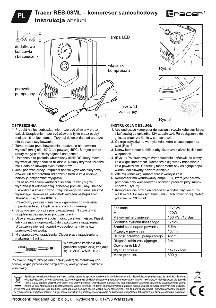 Lies die bedienungsanleitung für Tracer RES-03ML (2 Seiten) kostenlos online; sie gehört zur Kategorie Kompressor. Dieses Handbuch wurde von 3 Personen als hilfreich bewertet und erhielt im Schnitt 4.0 Sterne aus 7 Bewertungen. Hast du eine Frage zu Tracer RES-03ML oder möchtest du andere Nutzer dieses Produkts befragen? Stelle eine Frage