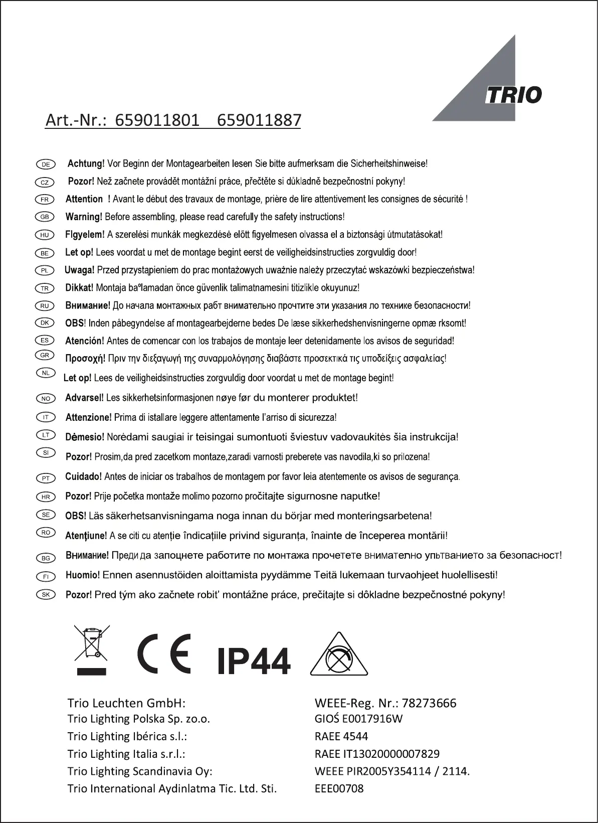 Bedienungsanleitung Beleuchtung Trio Lighting