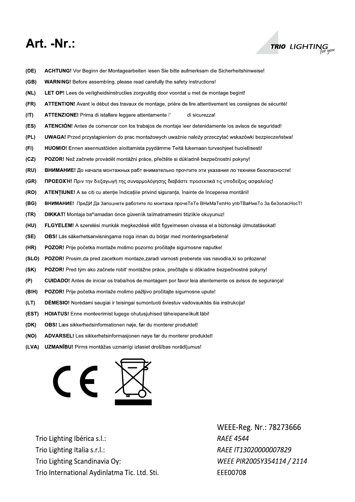 Bedienungsanleitung Beleuchtung Trio Lighting