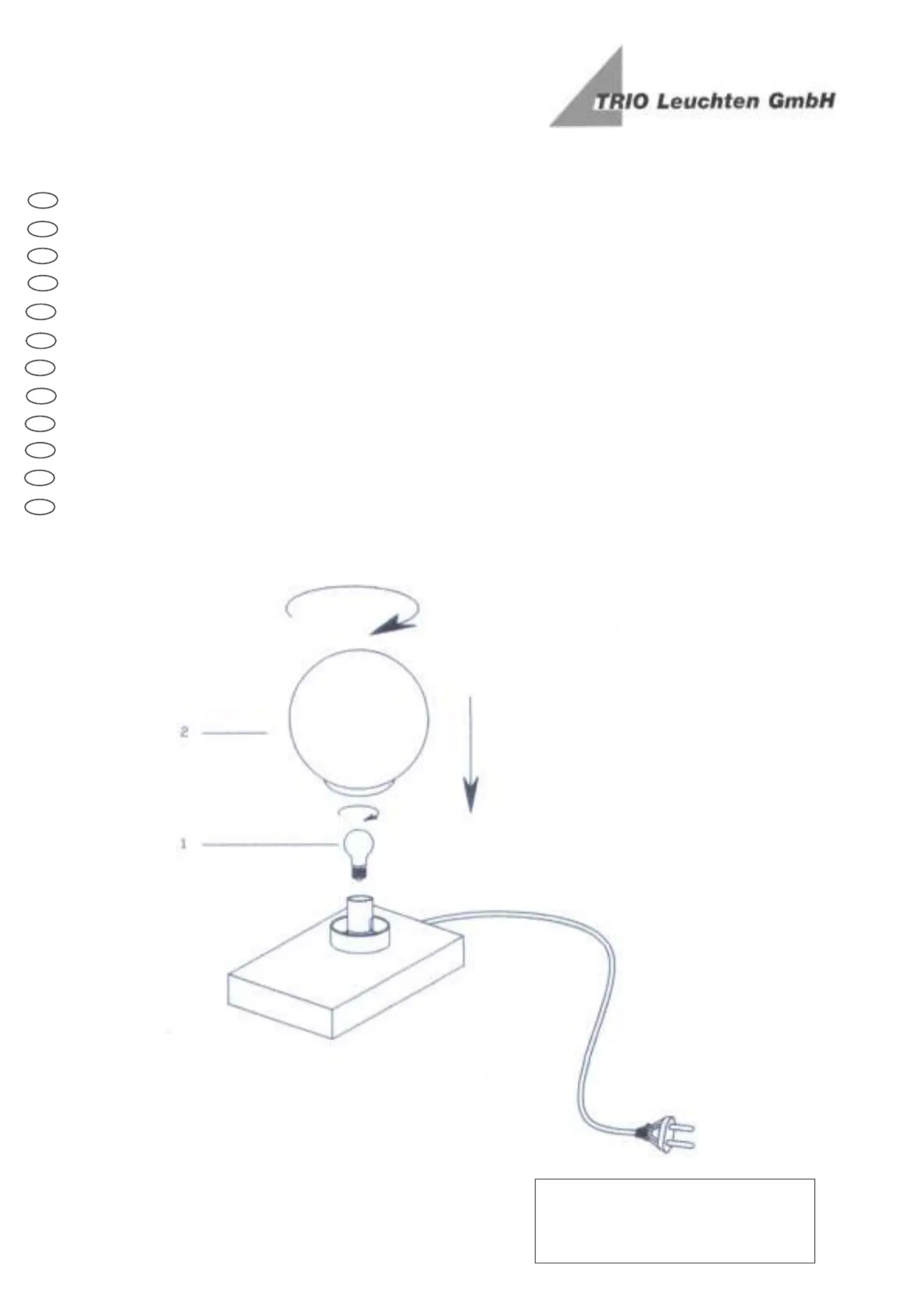 Bedienungsanleitung Beleuchtung Trio Lighting