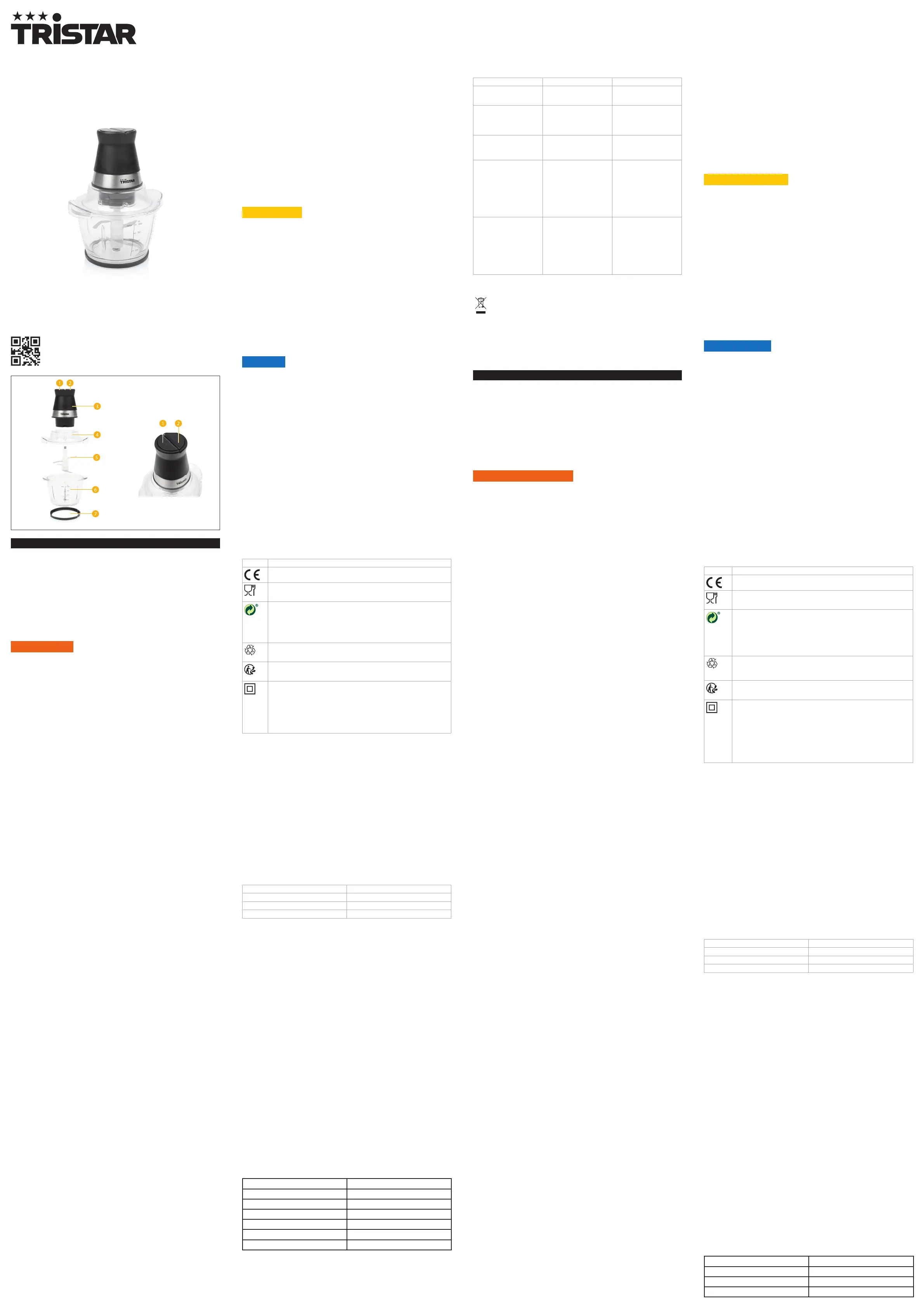 • Never use the chopper for more than 30