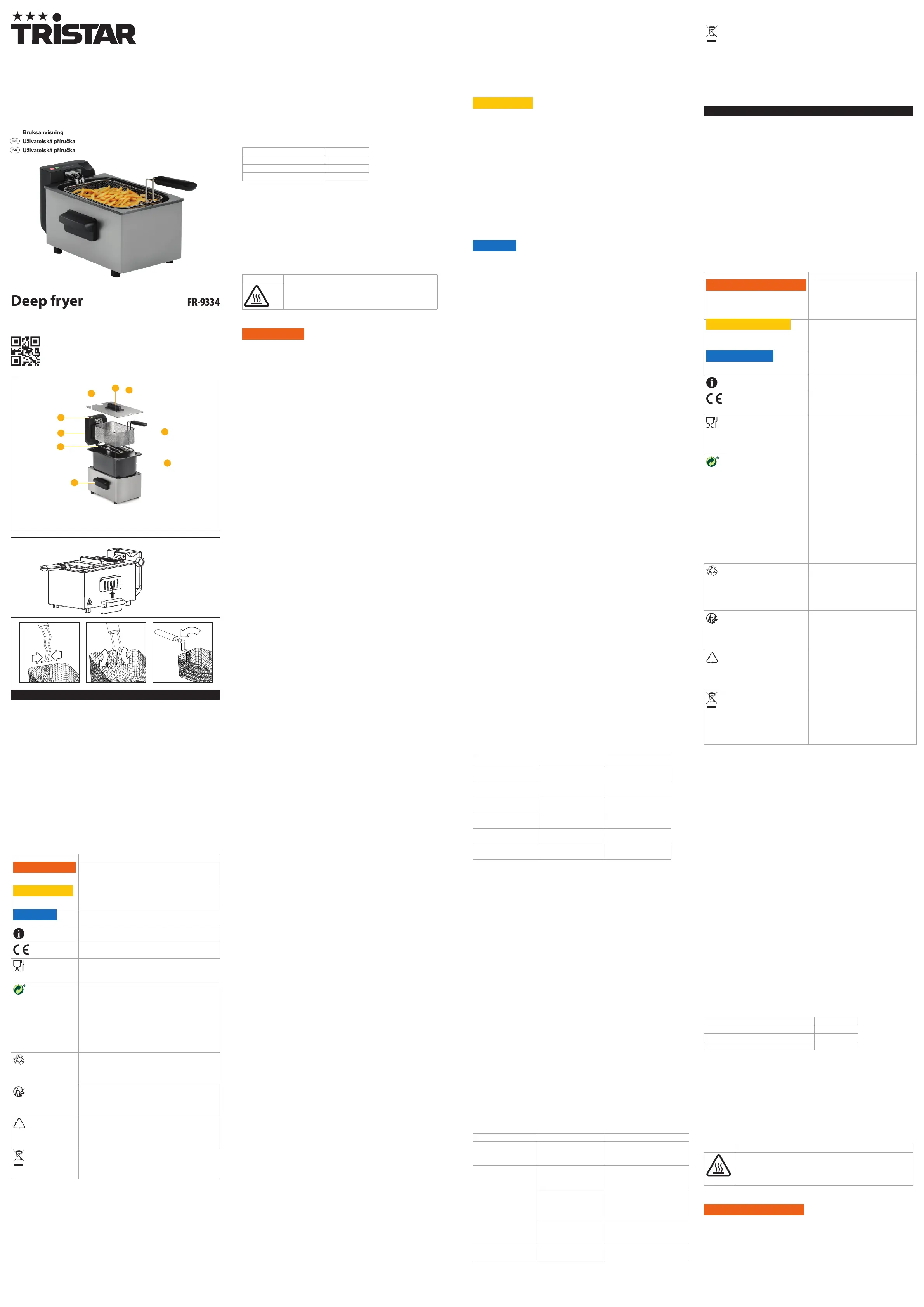 Lies die bedienungsanleitung für Tristar FR-9334 (10 Seiten) kostenlos online; sie gehört zur Kategorie Fritteuse. Dieses Handbuch wurde von 4 Personen als hilfreich bewertet und erhielt im Schnitt 5.0 Sterne aus 2.5 Bewertungen. Hast du eine Frage zu Tristar FR-9334 oder möchtest du andere Nutzer dieses Produkts befragen? Stelle eine Frage