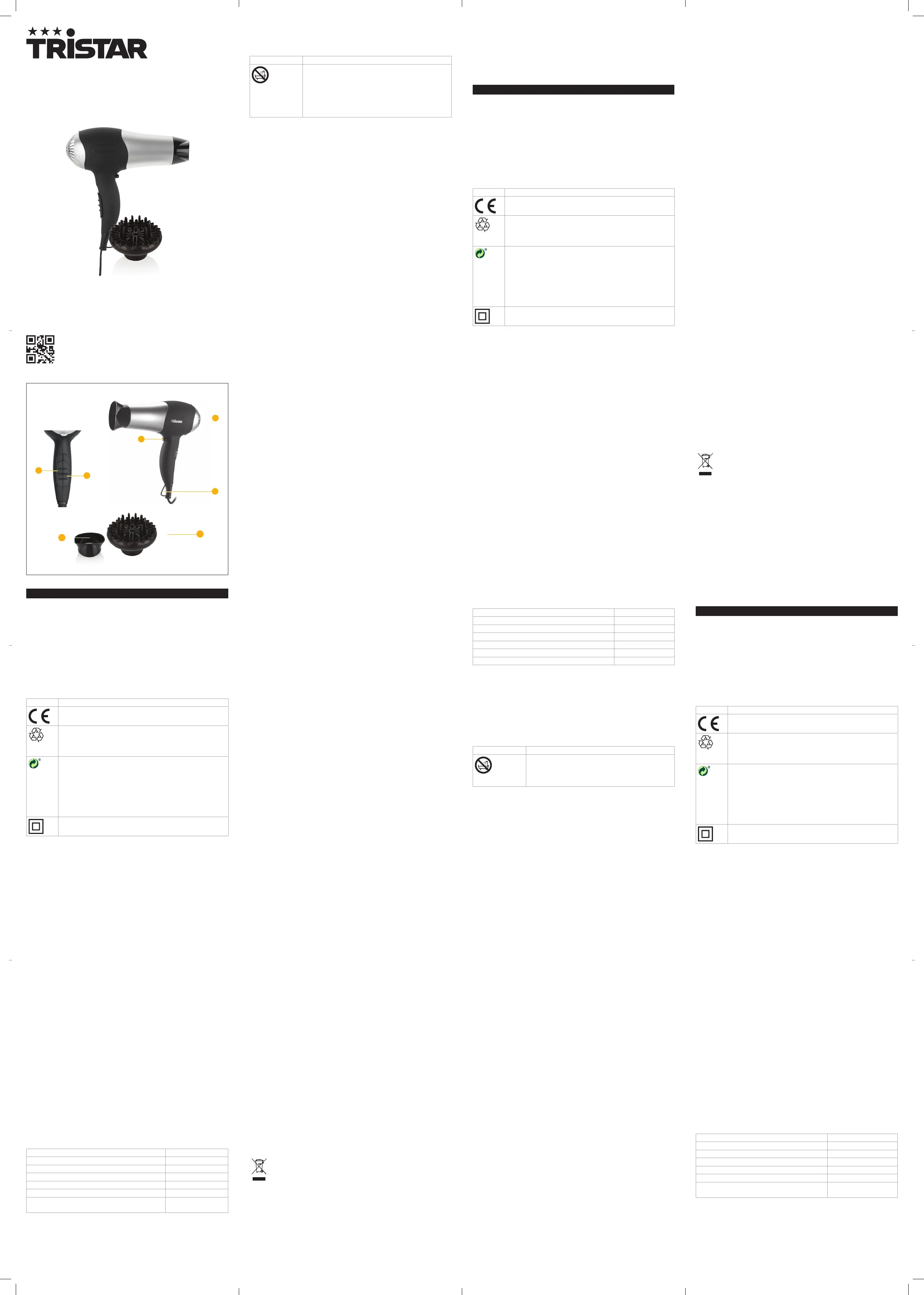 Lies die bedienungsanleitung für Tristar HD-2322KL (2 Seiten) kostenlos online; sie gehört zur Kategorie Haartrockner. Dieses Handbuch wurde von 3 Personen als hilfreich bewertet und erhielt im Schnitt 4.6 Sterne aus 6 Bewertungen. Hast du eine Frage zu Tristar HD-2322KL oder möchtest du andere Nutzer dieses Produkts befragen? Stelle eine Frage