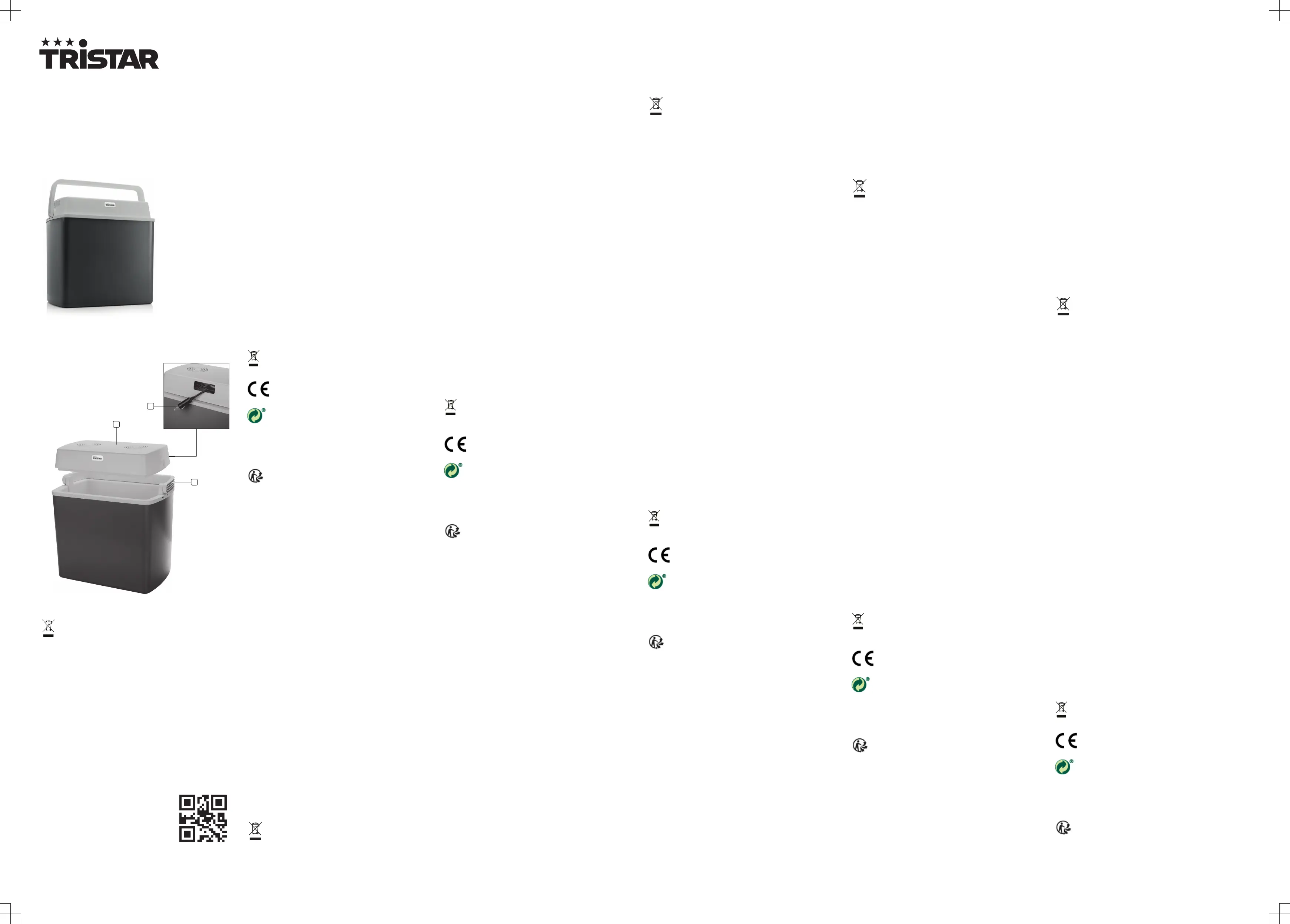 Lies die bedienungsanleitung für Tristar KB-7424CH (2 Seiten) kostenlos online; sie gehört zur Kategorie Kühlbox. Dieses Handbuch wurde von 11 Personen als hilfreich bewertet und erhielt im Schnitt 4.4 Sterne aus 6 Bewertungen. Hast du eine Frage zu Tristar KB-7424CH oder möchtest du andere Nutzer dieses Produkts befragen? Stelle eine Frage