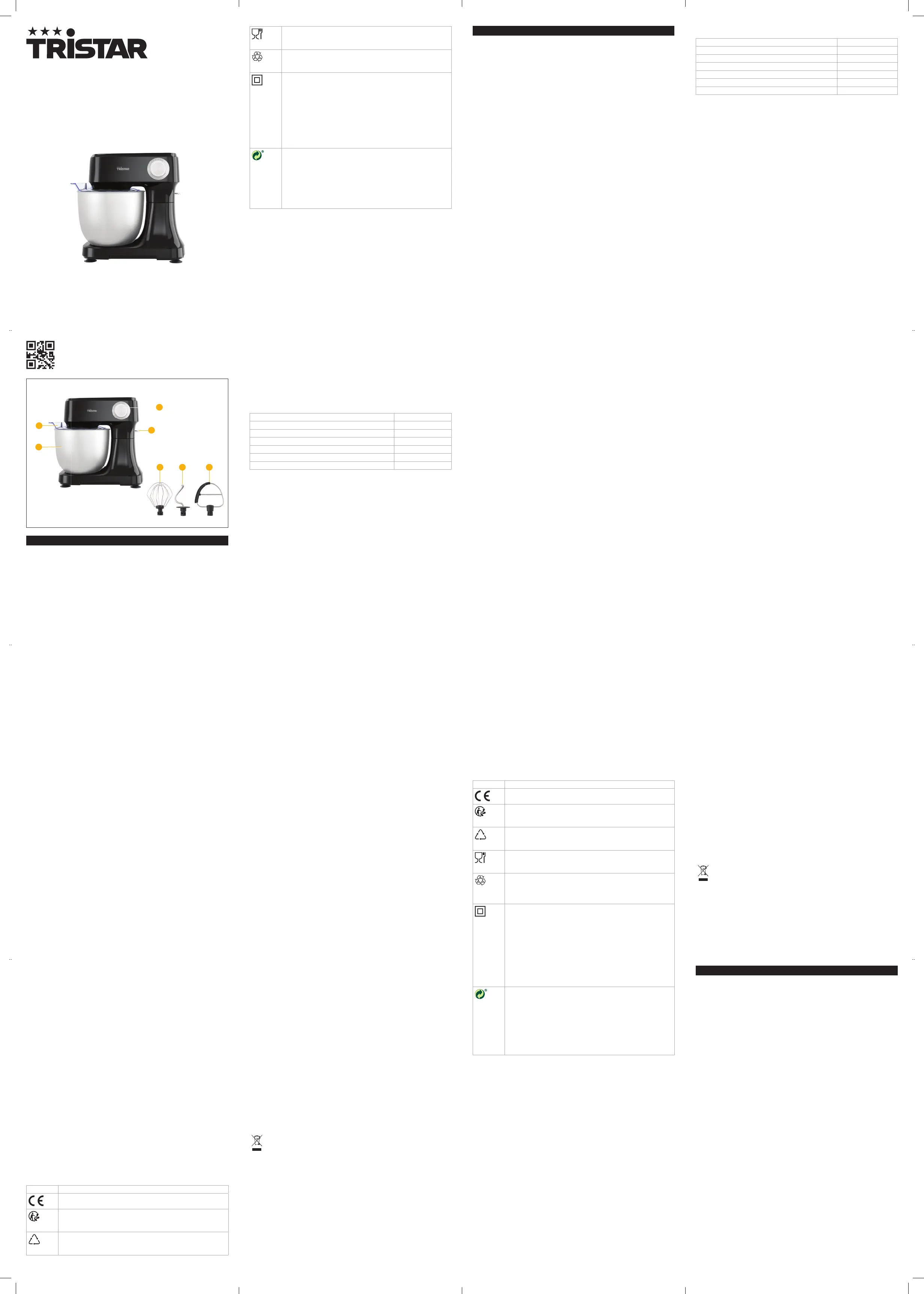 Bedienungsanleitung Küchenmaschine Tristar