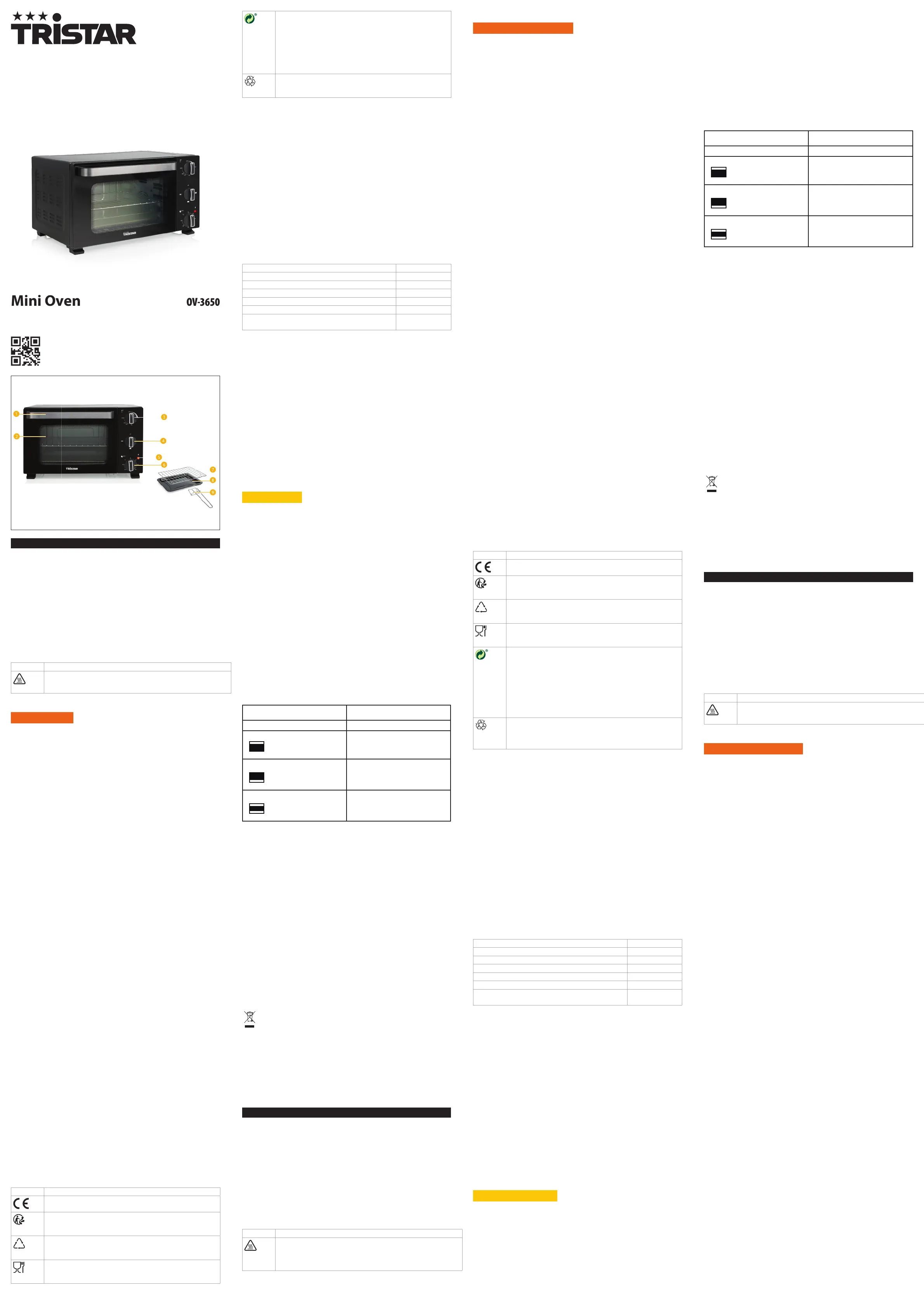 Lies die bedienungsanleitung für Tristar OV-3650 (5 Seiten) kostenlos online; sie gehört zur Kategorie Backöfen. Dieses Handbuch wurde von 3 Personen als hilfreich bewertet und erhielt im Schnitt 4.0 Sterne aus 6 Bewertungen. Hast du eine Frage zu Tristar OV-3650 oder möchtest du andere Nutzer dieses Produkts befragen? Stelle eine Frage