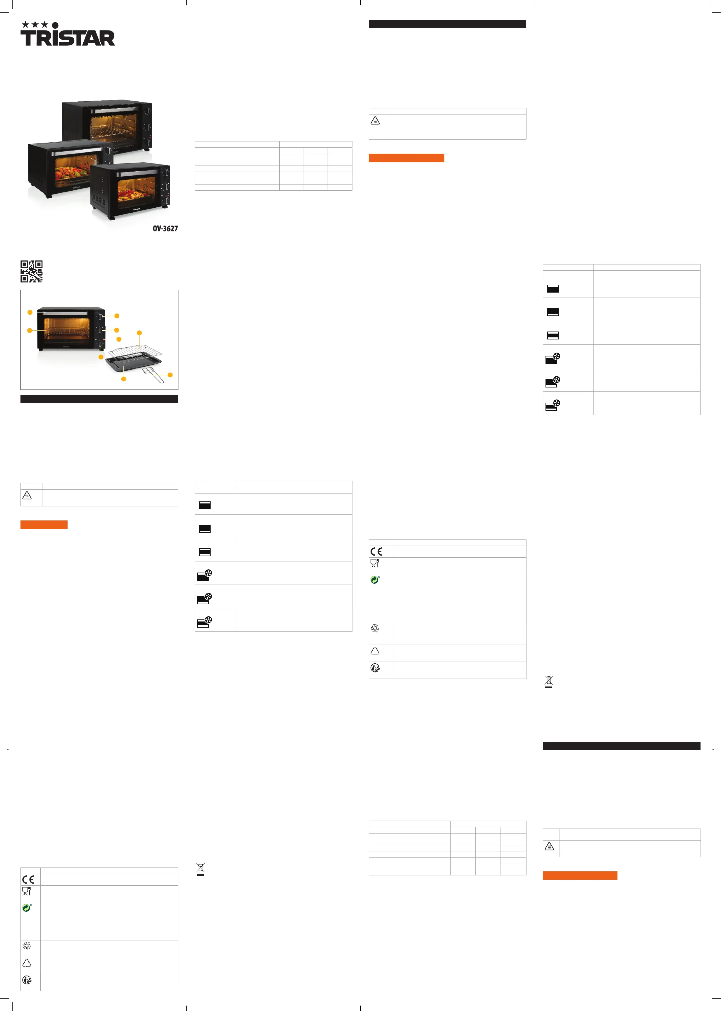 Lies die bedienungsanleitung für Tristar OV-3665 (5 Seiten) kostenlos online; sie gehört zur Kategorie Backöfen. Dieses Handbuch wurde von 2 Personen als hilfreich bewertet und erhielt im Schnitt 4.2 Sterne aus 2 Bewertungen. Hast du eine Frage zu Tristar OV-3665 oder möchtest du andere Nutzer dieses Produkts befragen? Stelle eine Frage