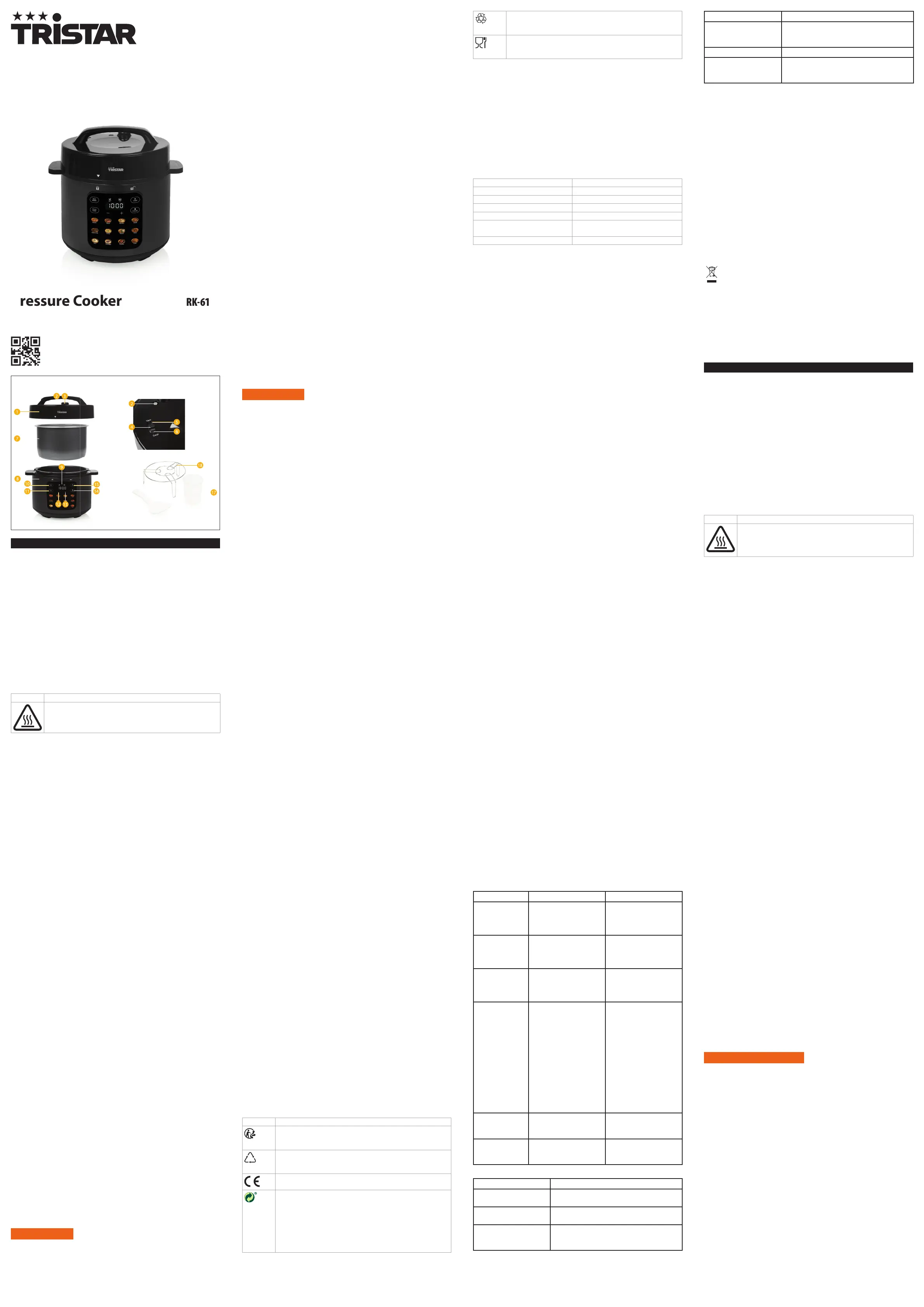 Lies die bedienungsanleitung für Tristar RK-6160 (10 Seiten) kostenlos online; sie gehört zur Kategorie Pfanne. Dieses Handbuch wurde von 2 Personen als hilfreich bewertet und erhielt im Schnitt 4.3 Sterne aus 5 Bewertungen. Hast du eine Frage zu Tristar RK-6160 oder möchtest du andere Nutzer dieses Produkts befragen? Stelle eine Frage