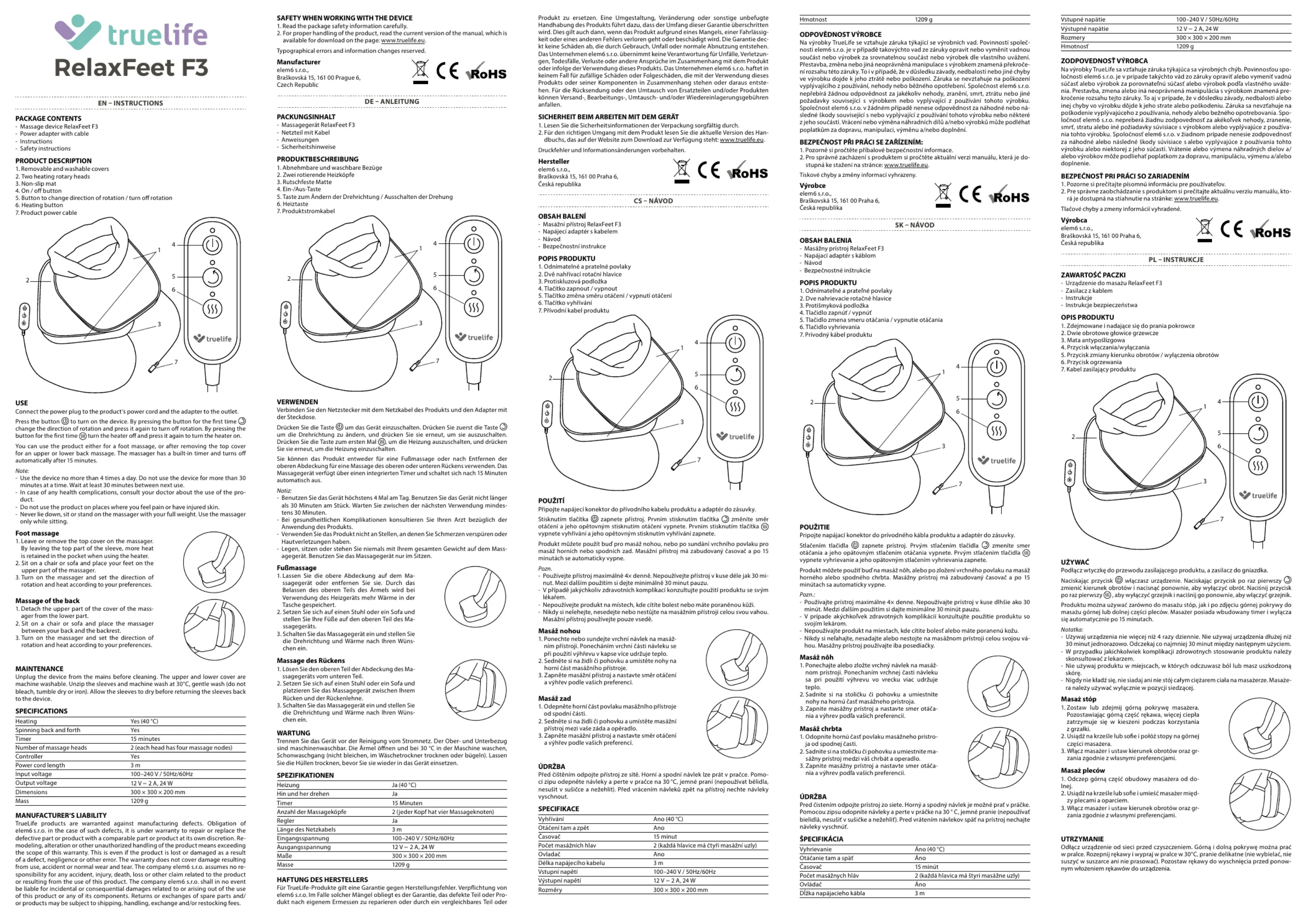 TrueLife RelaxFeet F3 Bedienungsanleitung